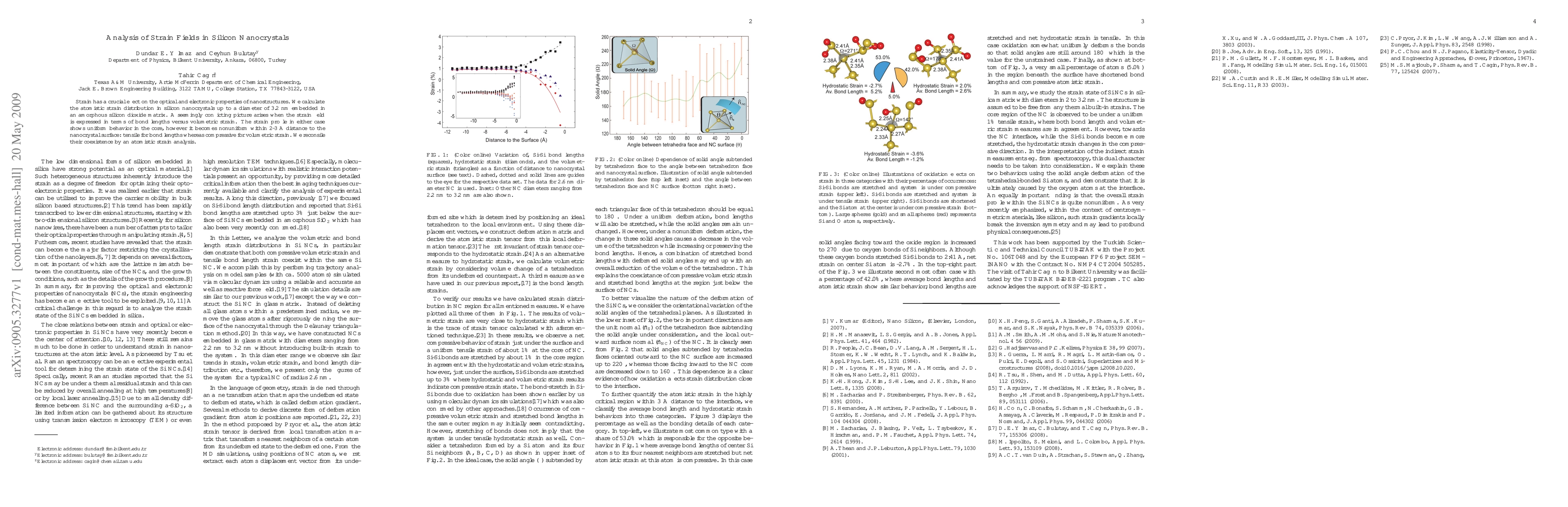 This research analyzes strain fields in silicon nanocrystals up to 3.2 nm in diameter within an amorphous silicon dioxide matrix. It finds conflicting yet coexisting strain behaviors: uniform tensile strain near bonds and compressive volumetric strain, resolved through atomistic strain analysis.