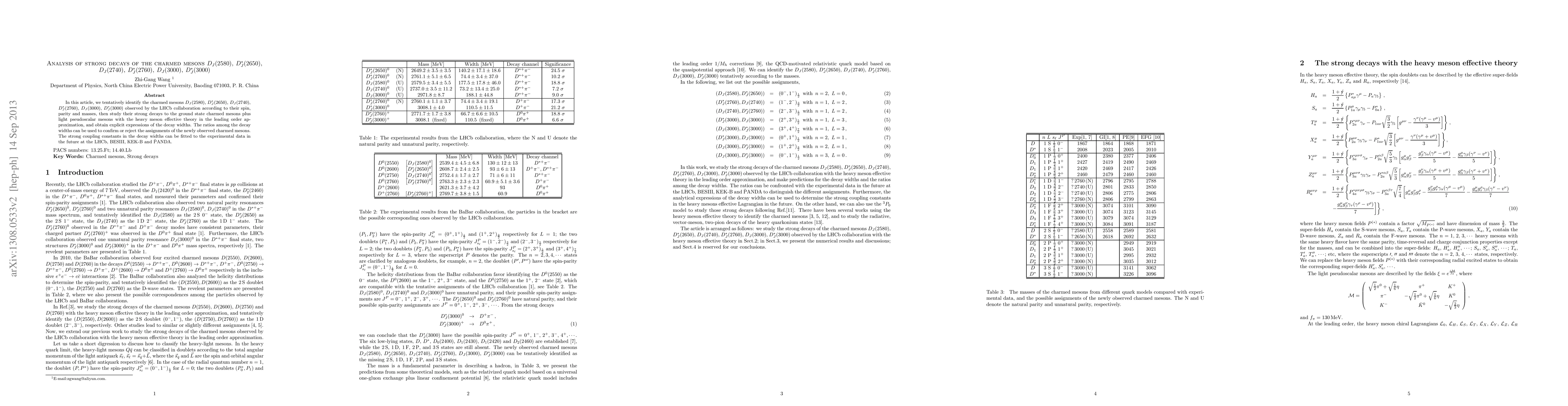 This study identifies six charmed mesons observed by LHCb, assigns them spin, parity, and mass, and predicts their strong decay patterns using heavy meson effective theory. It provides expressions for decay widths and suggests using these ratios to verify assignments, with future experimental data from LHCb, BESIII, KEK-B, and u200bu200bu200bu200bu200bar{P}ANDAu200bu200bu200bu200bu200b to fit coupling constants.