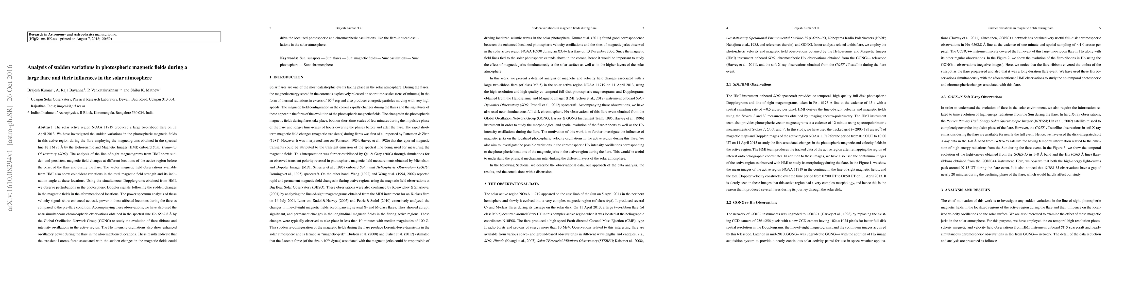 This paper analyzes sudden variations in photospheric magnetic fields during a large solar flare in active region NOAA 11719, revealing persistent magnetic field changes and coincident variations in magnetic field strength and inclination. These changes induce localized oscillations in the photosphere and chromosphere, suggesting that transient Lorentz forces drive flare-induced oscillations in the solar atmosphere.