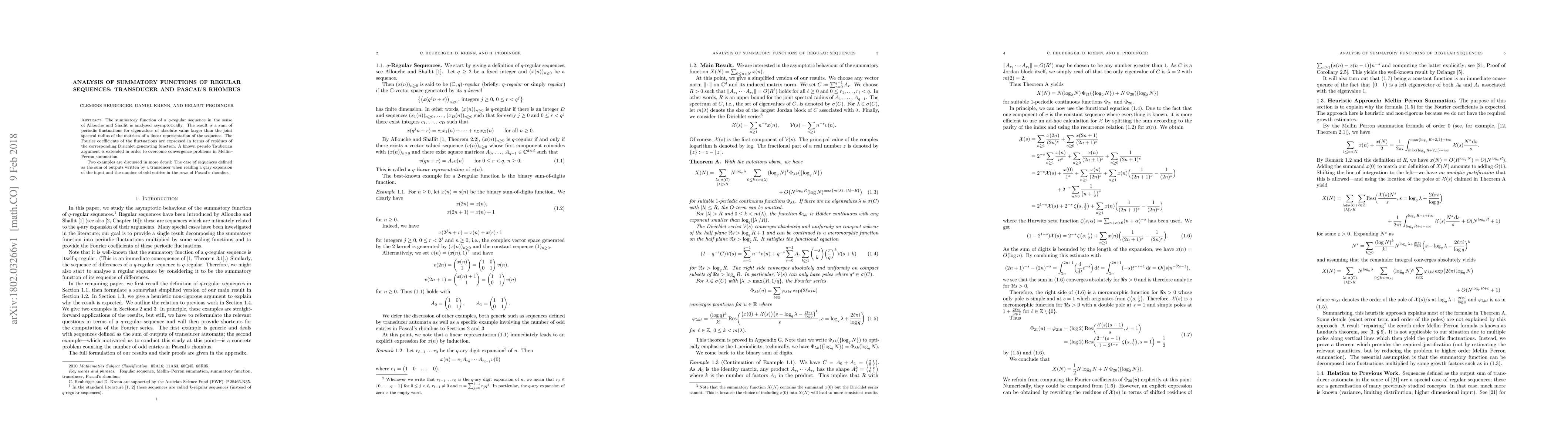 The summatory function of a $q$-regular sequence in the sense of Allouche and Shallit is analysed asymptotically. The result is a sum of periodic fluctuations for eigenvalues of absolute value larger than the joint spectral radius of the matrices of a linear representation of the sequence. The Fourier coefficients of the fluctuations are expressed in terms of residues of the corresponding Dirichlet generating function. A known pseudo Tauberian argument is extended in order to overcome convergence problems in Mellin--Perron summation. Two examples are discussed in more detail: The case of sequences defined as the sum of outputs written by a transducer when reading a $q$ary expansion of the input and the number of odd entries in the rows of Pascal's rhombus.