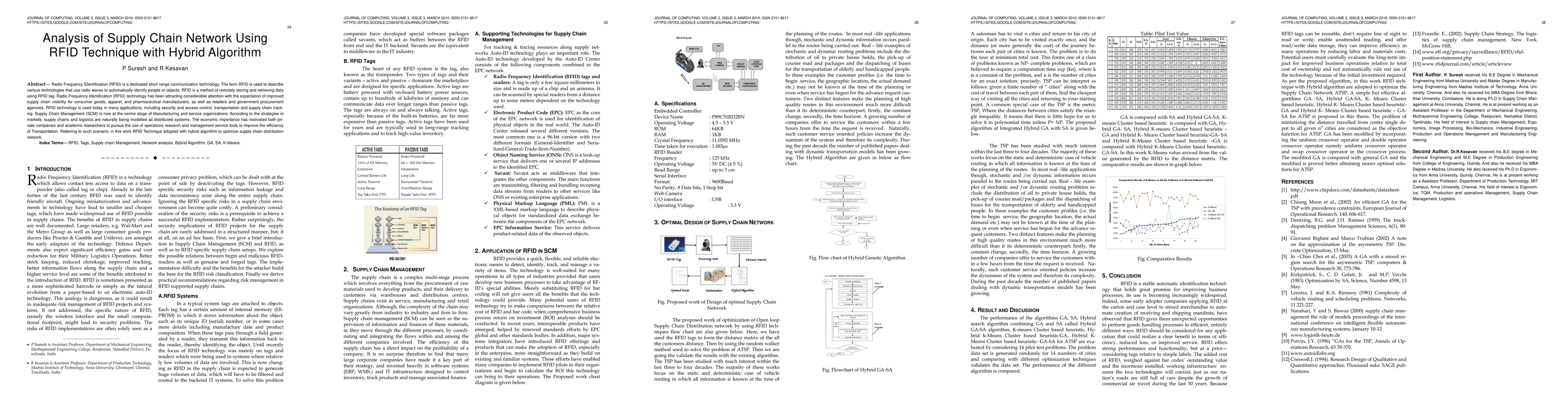 This paper examines the use of RFID technology in optimizing supply chain networks, leveraging a hybrid algorithm to enhance distribution efficiency and visibility in sectors like consumer goods, apparel, and pharmaceuticals. The study aims to improve supply chain management through advanced tracking and data retrieval capabilities.