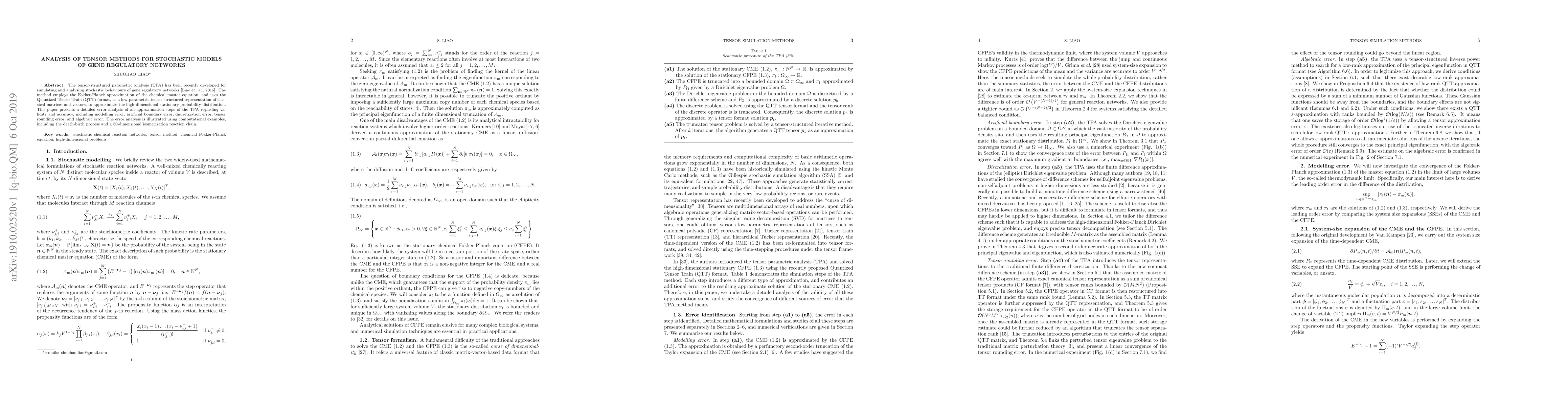 This paper analyzes the Tensor-Structured Parametric Analysis (TPA) method for simulating stochastic behaviors of gene regulatory networks, highlighting key approximation errors and computational examples.