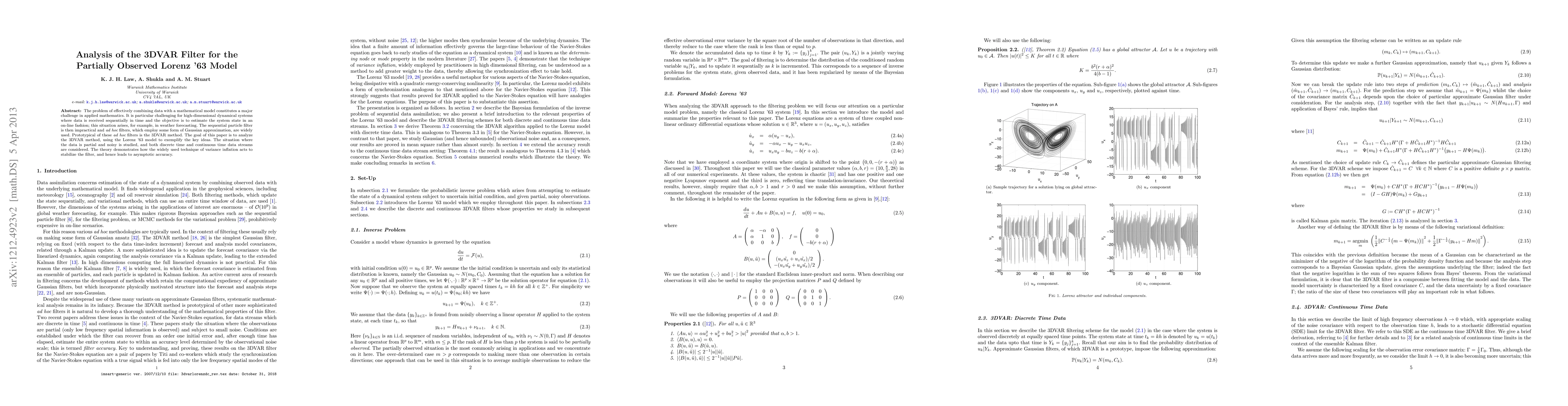 The problem of effectively combining data with a mathematical model constitutes a major challenge in applied mathematics. It is particular challenging for high-dimensional dynamical systems where data is received sequentially in time and the objective is to estimate the system state in an on-line fashion; this situation arises, for example, in weather forecasting. The sequential particle filter is then impractical and ad hoc filters, which employ some form of Gaussian approximation, are widely used. Prototypical of these ad hoc filters is the 3DVAR method. The goal of this paper is to analyze the 3DVAR method, using the Lorenz '63 model to exemplify the key ideas. The situation where the data is partial and noisy is studied, and both discrete time and continuous time data streams are considered. The theory demonstrates how the widely used technique of variance inflation acts to stabilize the filter, and hence leads to asymptotic accuracy.