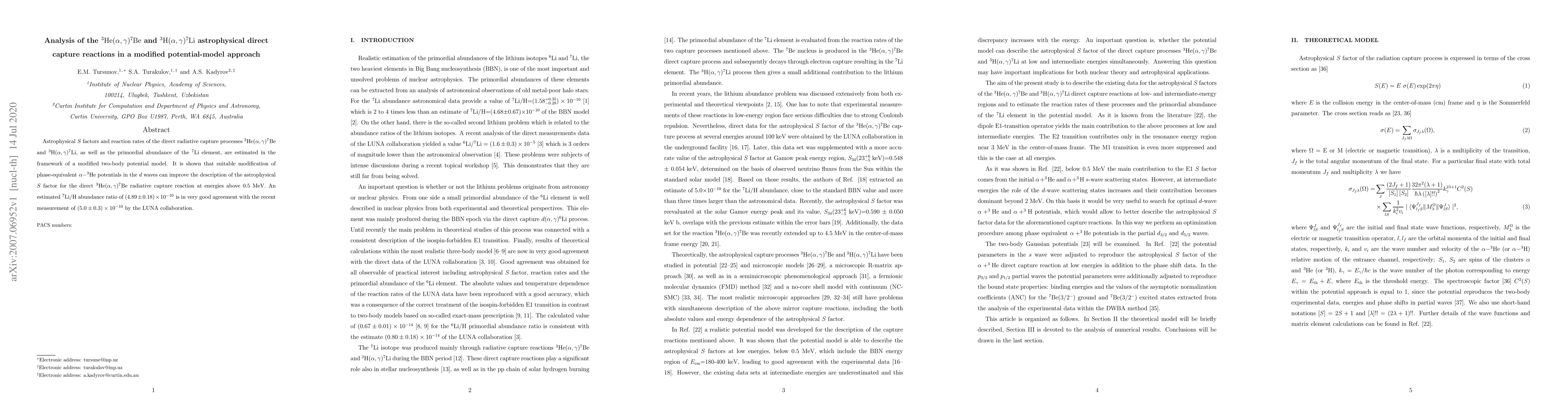 This paper analyzes the astrophysical direct capture reactions $^{3}{\rm He}(\alpha, \gamma)^{7}{\rm Be}$ and $^{3}{\rm H}(\alpha,\gamma)^{7}{\rm Li}$ using a modified potential-model approach, showing improved accuracy in the $S$ factor for the former at high energies. The estimated $^{7}{\rm Li}$ abundance ratio aligns well with recent measurements.