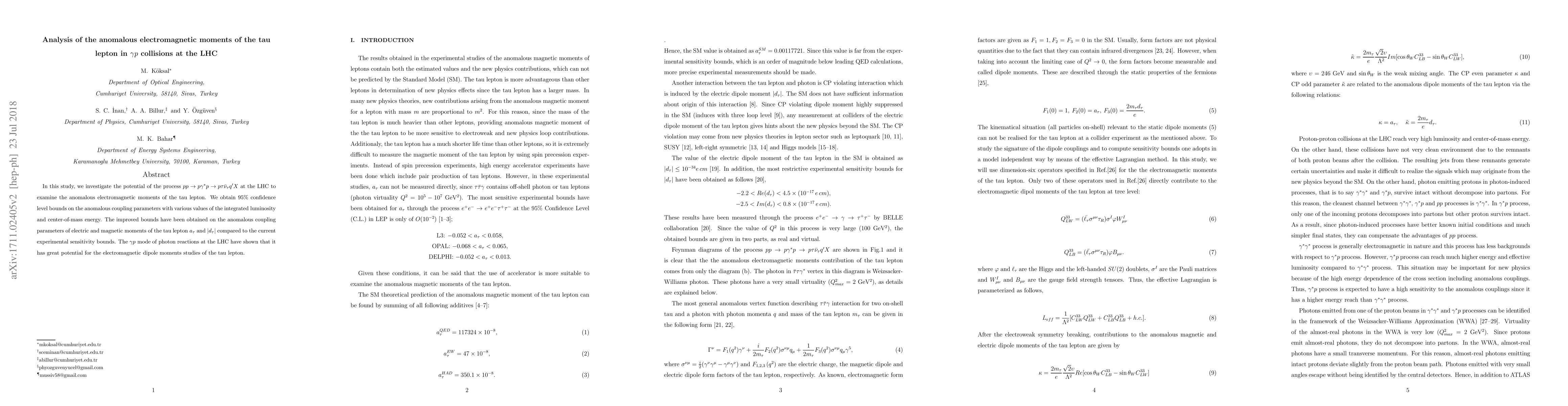 In this study, we investigate the potential of the process $pp\rightarrow p\gamma^{*} p\rightarrow p \tau \bar{\nu}_{\tau}q^{\prime} X$ at the LHC to examine the anomalous electromagnetic moments of the tau lepton. We obtain $95\%$ confidence level bounds on the anomalous coupling parameters with various values of the integrated luminosity and center-of-mass energy. The improved bounds have been obtained on the anomalous coupling parameters of electric and magnetic moments of the tau lepton $a_{\tau}$ and $\vert$$d_{\tau}$$\vert$ compared to the current experimental sensitivity bounds. The $\gamma p$ mode of photon reactions at the LHC have shown that it has great potential for the electromagnetic dipole moments studies of the tau lepton.