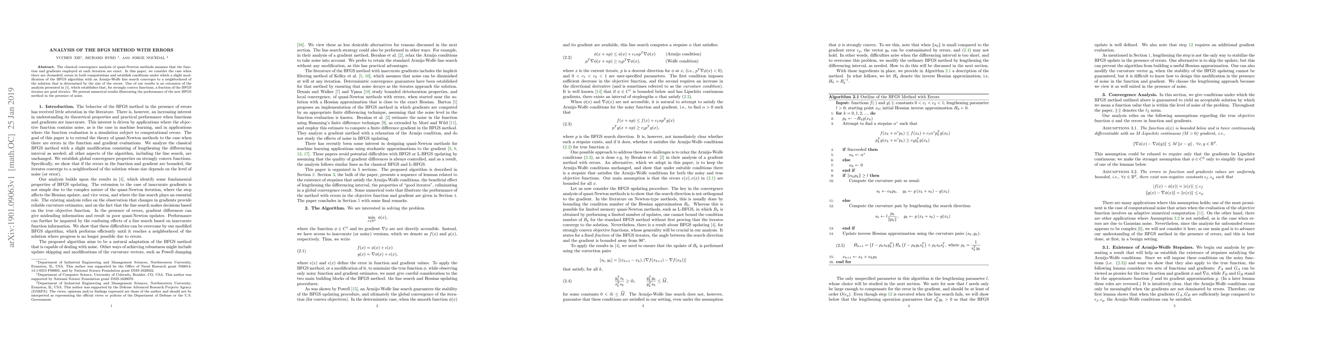 Researchers analyze how errors in function and gradient computations affect the BFGS algorithm and find conditions for convergence to a neighborhood of the solution determined by error size. They also show improved performance with noise in numerical results.