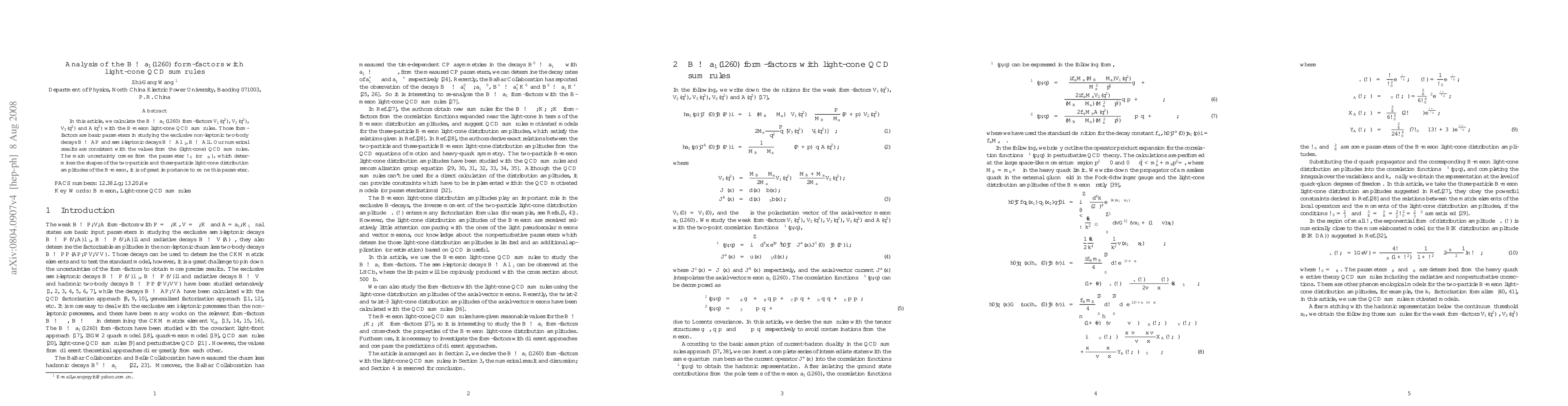 This paper calculates the $B\to a_1(1260)$ form-factors using light-cone QCD sum rules, finding results consistent with QCD sum rules. The main uncertainty arises from the parameter $\omega_0$ which influences the distribution amplitudes of the $B$ meson.