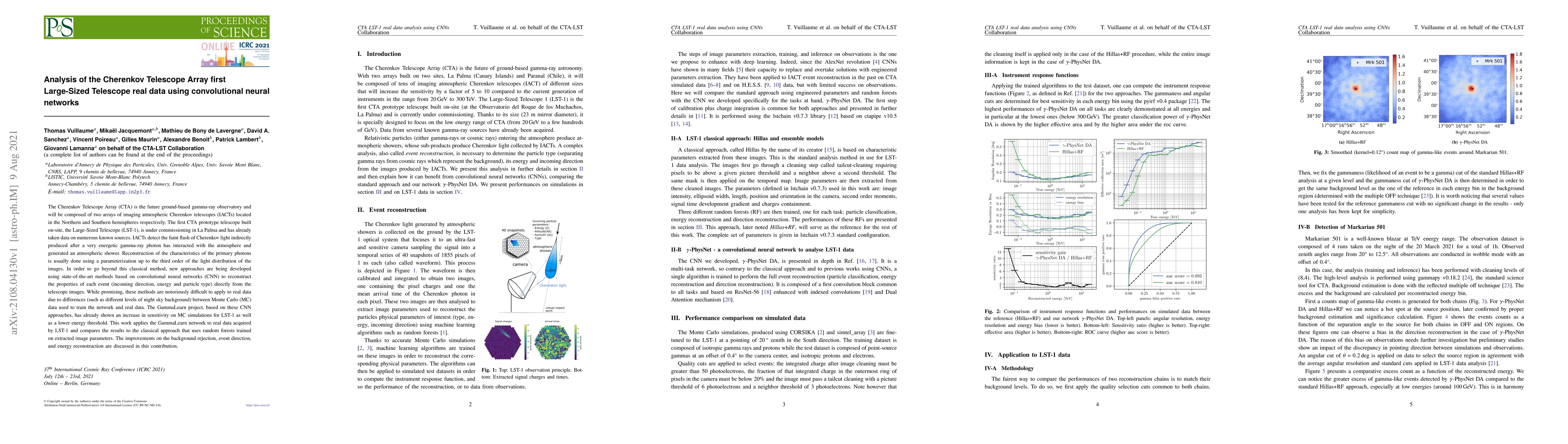 This paper investigates the application of convolutional neural networks (CNN) from the GammaLearn project to real data from the Cherenkov Telescope Array's Large-Sized Telescope (LST-1), comparing their performance to traditional methods for reconstructing gamma-ray properties. The study finds improvements in background rejection, event direction, and energy reconstruction using CNNs over classical methods.