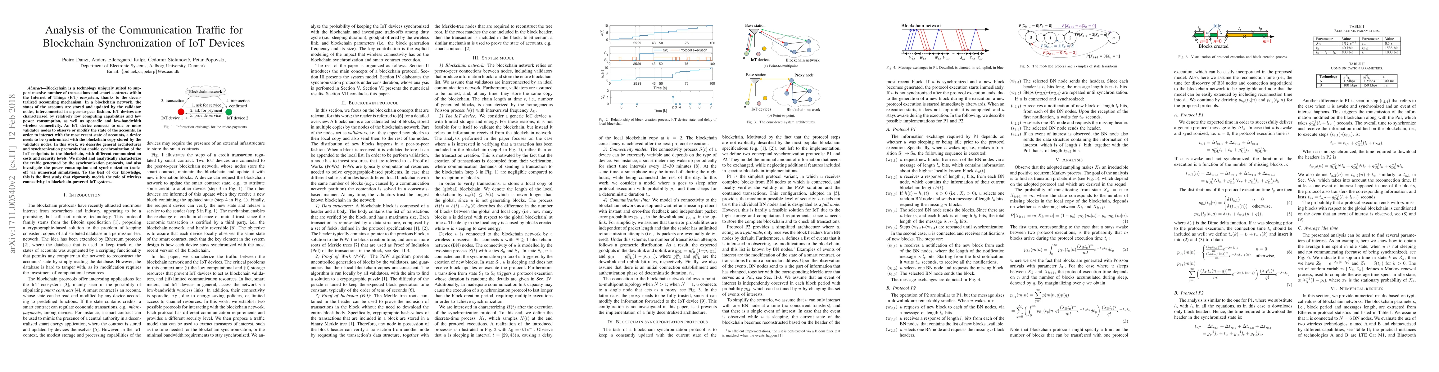 This paper analyzes communication traffic for blockchain synchronization in IoT devices, detailing architectures and protocols that balance synchronization efficiency with power consumption. It models and simulates the resulting traffic and energy use, highlighting the unique challenges of wireless connectivity in blockchain-enabled IoT systems.