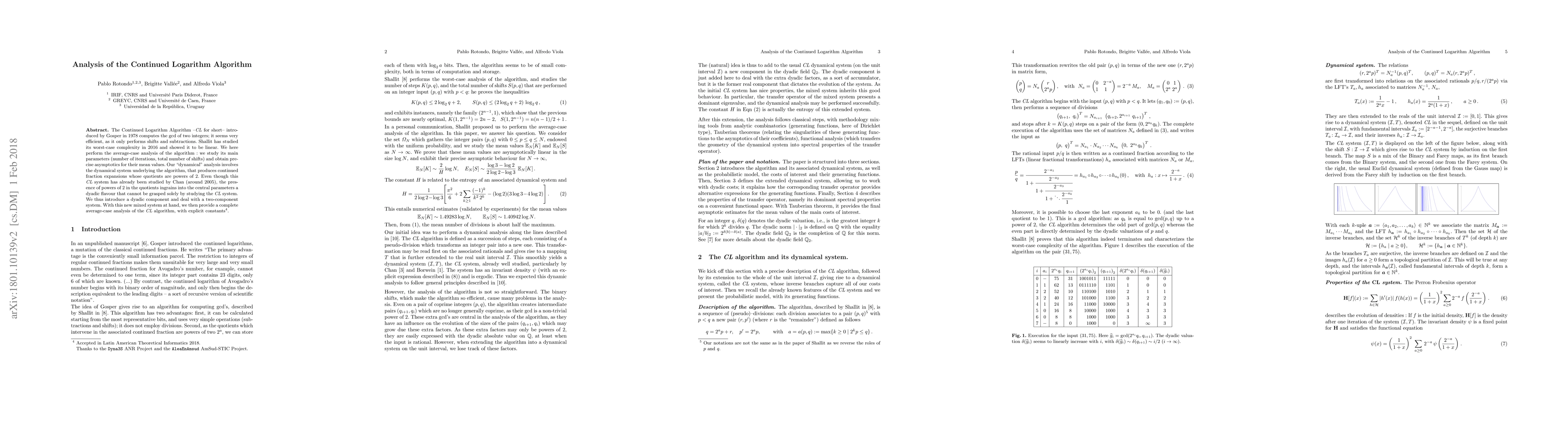 Researchers analyze the average-case complexity of the Continued Logarithm Algorithm, finding precise asymptotics for its main parameters and providing a complete average-case analysis with explicit constants.