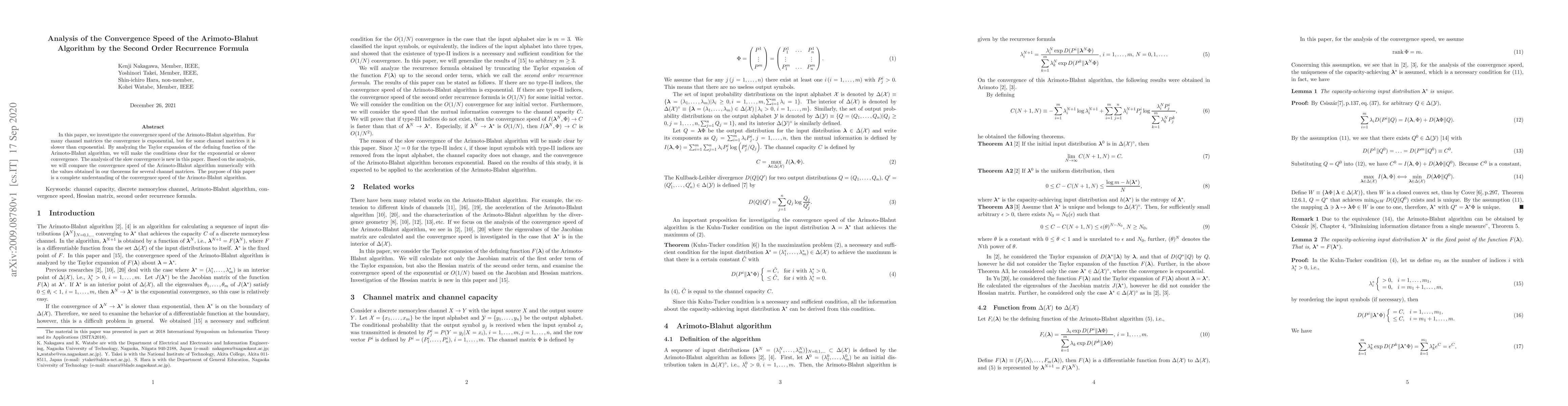 This paper analyzes the convergence speed of the Arimoto-Blahut algorithm, identifying conditions for exponential versus slower convergence through Taylor expansion. It introduces new insights into slow convergence and compares numerical results with theoretical predictions for various channel matrices.