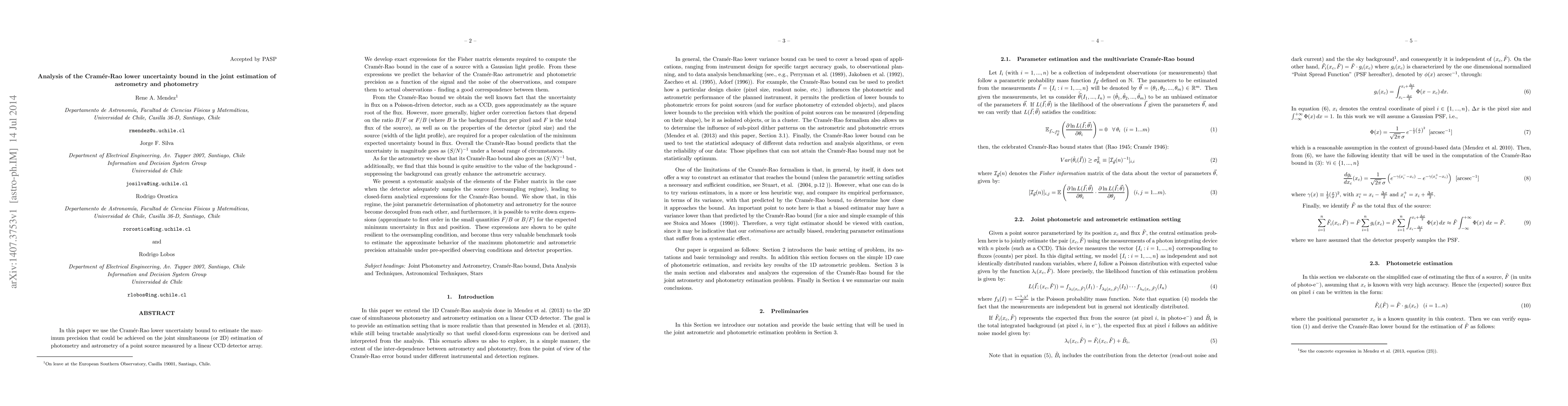 This paper analyzes the Cramer-Rao lower uncertainty bound for joint estimation of photometry and astrometry of point sources using a linear CCD detector. It develops exact Fisher matrix expressions for Gaussian light profiles, showing that the astrometric bound is sensitive to background suppression and that joint estimation becomes decoupled under oversampling, providing valuable benchmarks for precision estimation.