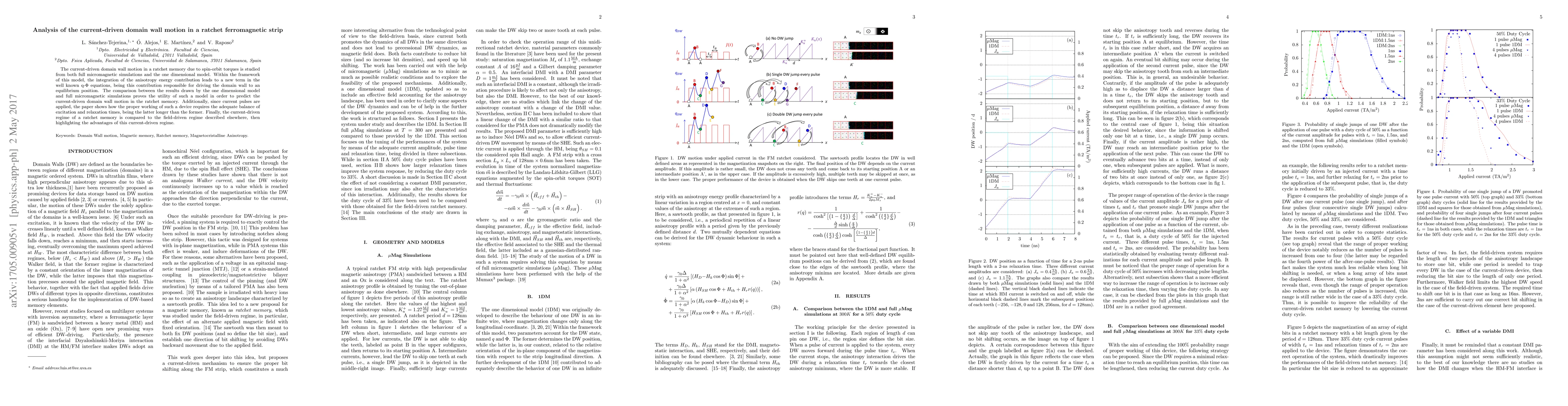 The study employs both full micromagnetic simulations and a one-dimensional (1D) model to analyze current-driven domain wall motion in a ratchet ferromagnetic strip, focusing on spin-orbit torques and anisotropy energy contributions.