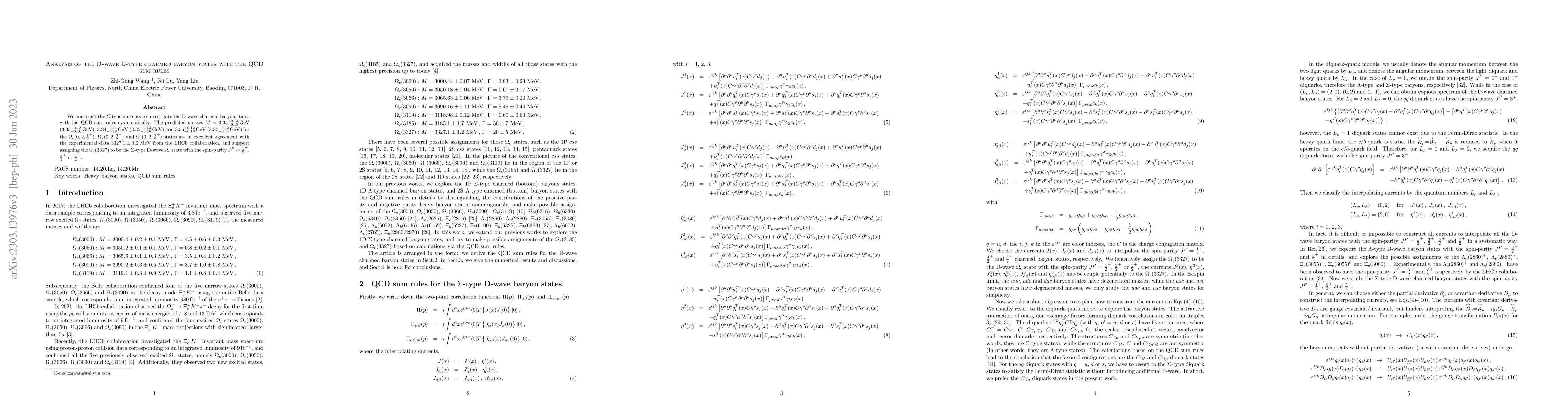 We construct the $\Sigma$-type currents to investigate the D-wave charmed baryon states with the QCD sum rules systematically. The predicted masses $M=3.35^{+0.13}_{-0.18}\,\rm{GeV}$ ($3.33^{+0.13}_{-0.16}\,\rm{GeV}$), $3.34^{+0.14}_{-0.18}\,\rm{GeV}$ ($3.35^{+0.13}_{-0.16}\,\rm{GeV}$) and $3.35^{+0.12}_{-0.13}\,\rm{GeV}$ ($3.35^{+0.12}_{-0.14}\,\rm{GeV}$) for the $\Omega_c(0,2,{\frac{1}{2}}^+)$, $\Omega_c(0,2,{\frac{3}{2}}^+)$ and $\Omega_c(0,2,{\frac{5}{2}}^+)$ states are in excellent agreement with the experimental data $ 3327.1\pm1.2 \mbox{ MeV}$ from the LHCb collaboration, and support assigning the $\Omega_c(3327)$ to be the $\Sigma$-type D-wave $\Omega_c$ state with the spin-parity $J^P={\frac{1}{2}}^+$, ${\frac{3}{2}}^+$ or ${\frac{5}{2}}^+$.