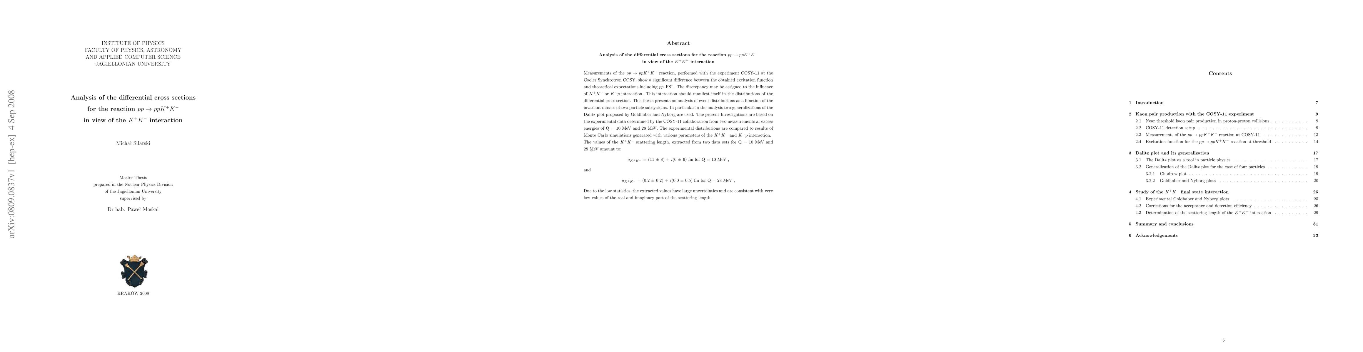 Measurements of the pp-->ppK+K- reaction, performed with the experiment COSY-11 at the Cooler Synchrotron COSY, show a significant difference between the obtained excitation function and theoretical expectations including pp-FSI >. The discrepancy may be assigned to the influence of K+K- or K-p interaction. This interaction should manifest itself in the distributions of the differential cross section. This thesis presents an analysis of event distributions as a function of the invariant masses of two particle subsystems. In particular in the analysis two generalizations of the Dalitz plot proposed by Goldhaber and Nyborg are used. The present Investigations are based on the experimental data determined by the COSY-11 collaboration from two measurements at excess energies of Q = 10 MeV and 28 MeV. The experimental distributions are compared to results of Monte Carlo simulations generated with various parameters of the K+K- and K-p interaction. The values of the K+K- scattering length, extracted from two data sets for Q = 10 MeV and 28 MeV amount to: a_K+K- = (11 +- 8) + i(0 +- 6) fm for Q = 10 MeV, and a_K+K- = (0.2 +-0.2) + i(0.0 +- 0.5) fm for Q = 28 MeV, Due to the low statistics, the extracted values have large uncertainties and are consistent with very low values of the real and imaginary part of the scattering length.