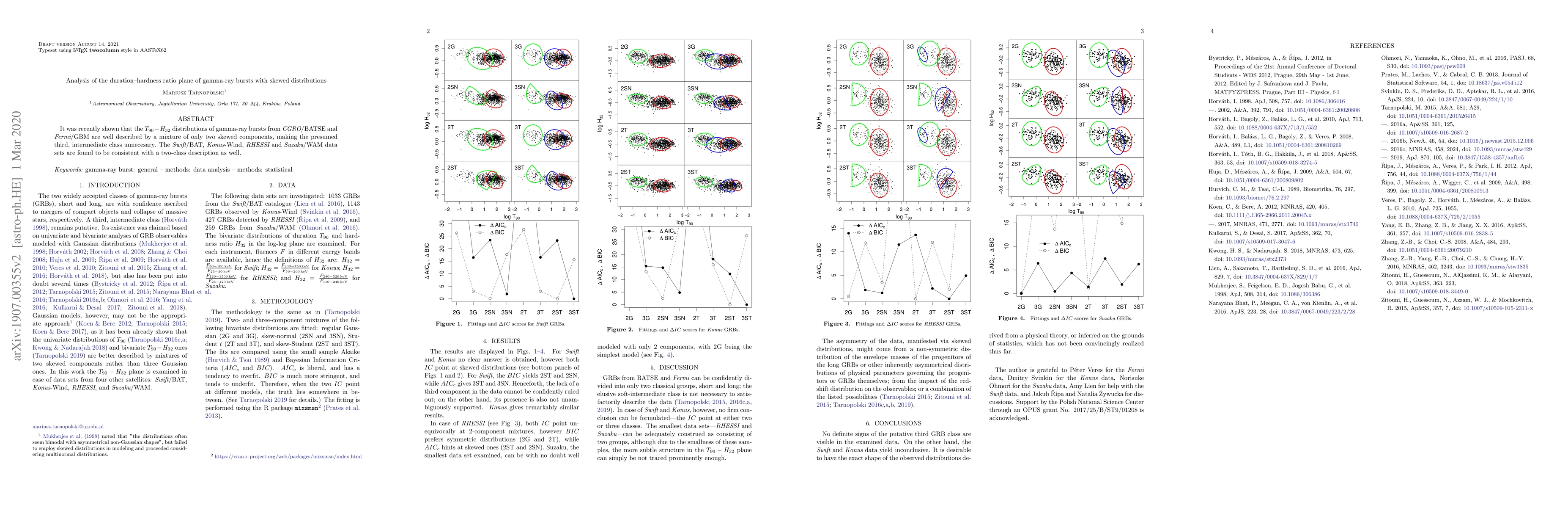 It was recently shown that the $T_{90}-H_{32}$ distributions of gamma-ray bursts from CGRO/BATSE and Fermi/GBM are well described by a mixture of only two skewed components, making the presumed third, intermediate class unnecesary. The Swift/BAT, Konus-Wind, RHESSI and Suzaku/WAM data sets are found to be consistent with a two-class description as well.