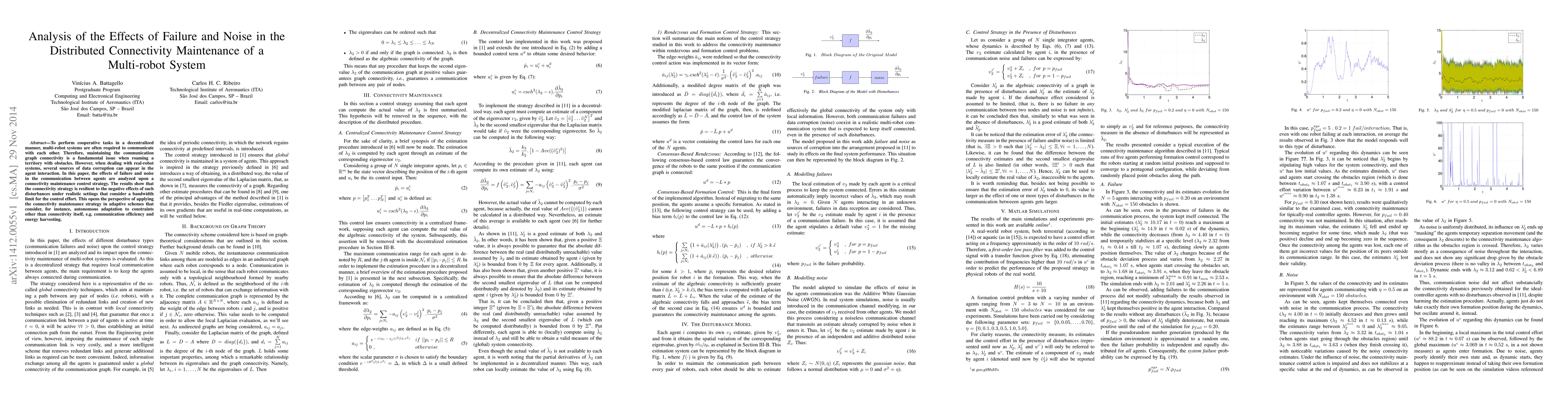 This paper analyzes the impact of failure and noise on the connectivity maintenance of a multi-robot system, demonstrating that a proposed connectivity strategy remains effective despite these disturbances, even under bandwidth constraints. This resilience suggests potential for integrating the strategy into adaptive systems that balance connectivity with other factors like communication efficiency and energy use.