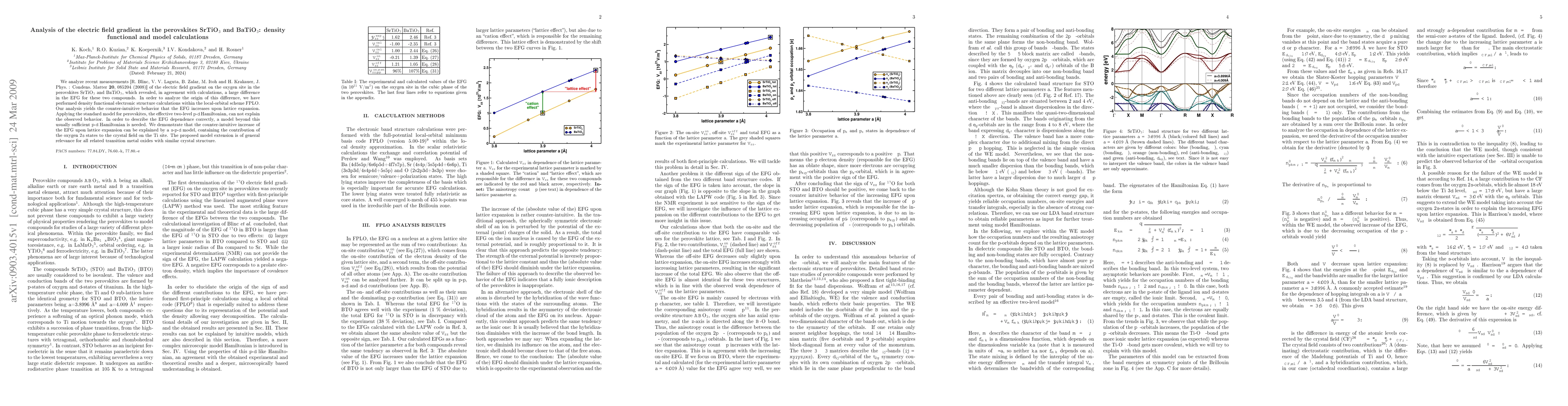 We analyze recent measurements [R. Blinc, V. V. Laguta, B. Zalar, M. Itoh and H. Krakauer, J. Phys. : Cond. Mat., v.20, 085204 (2008)] of the electric field gradient on the oxygen site in the perovskites SrTiO3 and BaTiO3, which revealed, in agreement with calculations, a large difference in the EFG for these two compounds. In order to analyze the origin of this difference, we have performed density functional electronic structure calculations within the local-orbital scheme FPLO. Our analysis yields the counter-intuitive behavior that the EFG increases upon lattice expansion. Applying the standard model for perovskites, the effective two-level p-d Hamiltonian, can not explain the observed behavior. In order to describe the EFG dependence correctly, a model beyond this usually sufficient p-d Hamiltonian is needed. We demonstrate that the counter-intuitive increase of the EFG upon lattice expansion can be explained by a s-p-d model, containing the contribution of the oxygen 2s states to the crystal field on the Ti site. The proposed model extension is of general relevance for all related transition metal oxides with similar crystal structure.