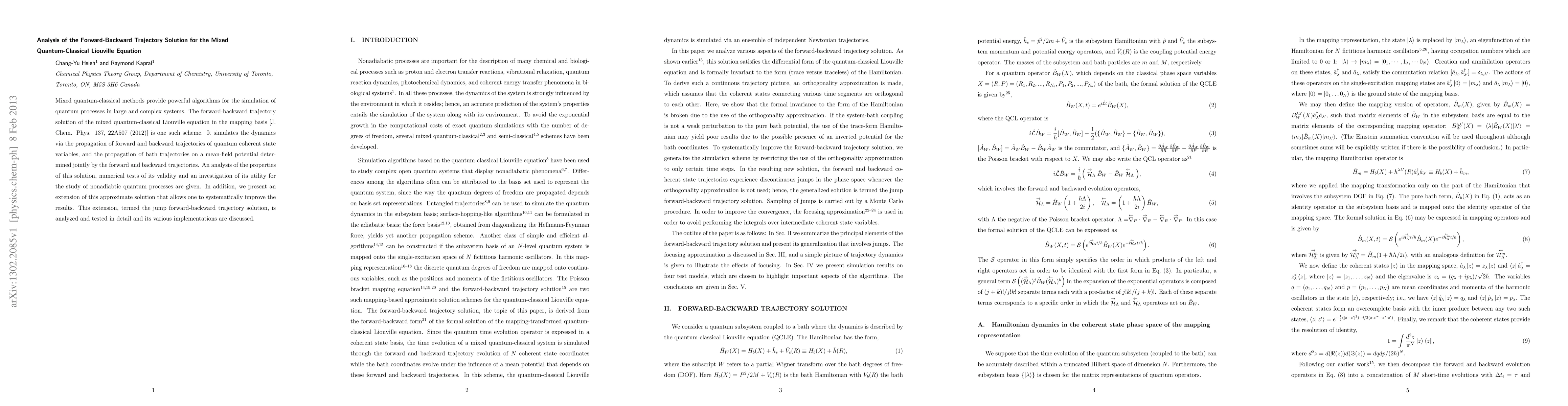 This paper analyzes the forward-backward trajectory solution for the mixed quantum-classical Liouville equation, assessing its validity and utility for simulating nonadiabatic quantum processes. It also introduces a systematic improvement method, the jump forward-backward trajectory solution, and examines its detailed implementations.