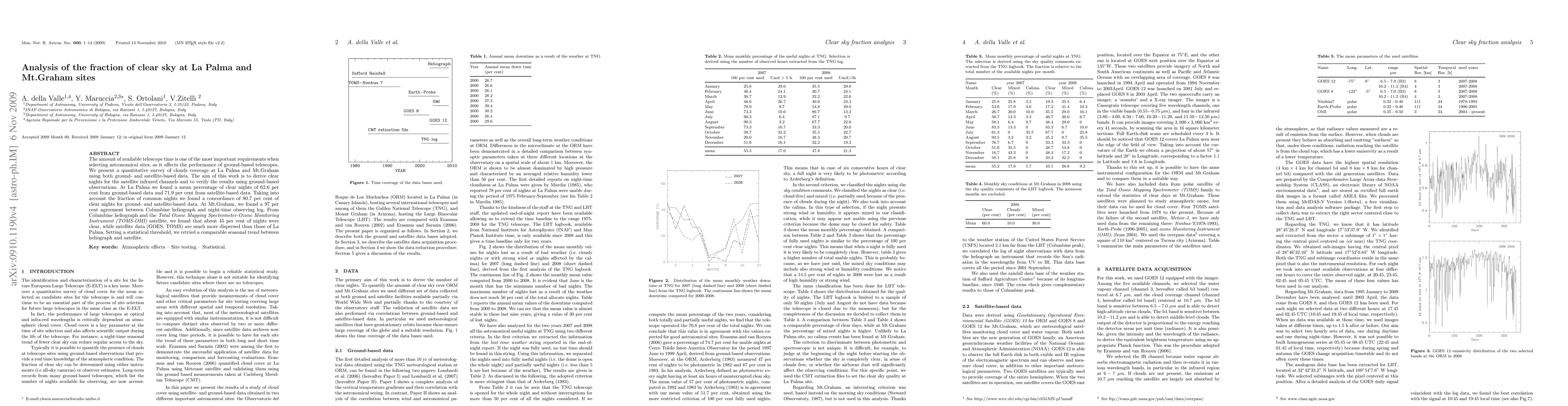 This study quantitatively analyzes clear sky fractions at La Palma and Mt. Graham using ground and satellite data, finding 62.6% clear nights at La Palma from ground observations and 71.9% from satellites, with 80.7% agreement. At Mt. Graham, satellite data show only 45% clear nights, with more variability compared to La Palma.