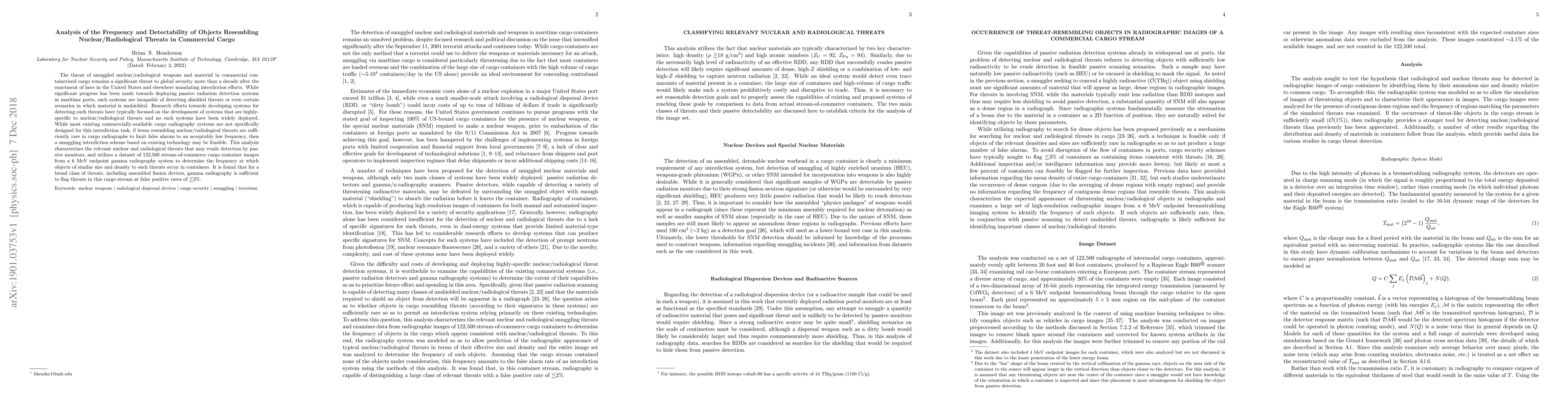 This research analyzes the frequency of objects resembling nuclear/radiological threats in commercial cargo using a dataset of 122,500 container images from a gamma radiography system. It finds that for a range of threats, gamma radiography can identify them at false alarm rates of less than 2%, suggesting existing technology could support interdiction efforts.