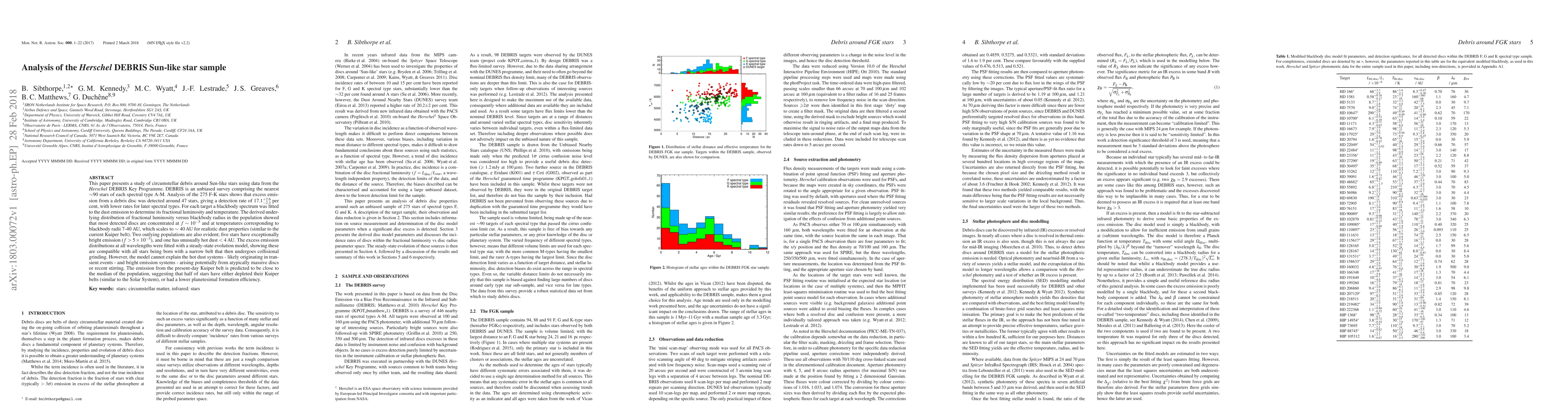 The study analyzed 275 Sun-like stars using Herschel DEBRIS data, detecting debris discs around 17.1% of them. Most discs were found to be similar in size to our Kuiper belt, but some showed exceptionally bright or hot emission, likely due to transient events or massive discs. The findings suggest half of stars may have depleted or had less efficient Kuiper belt-like regions.
