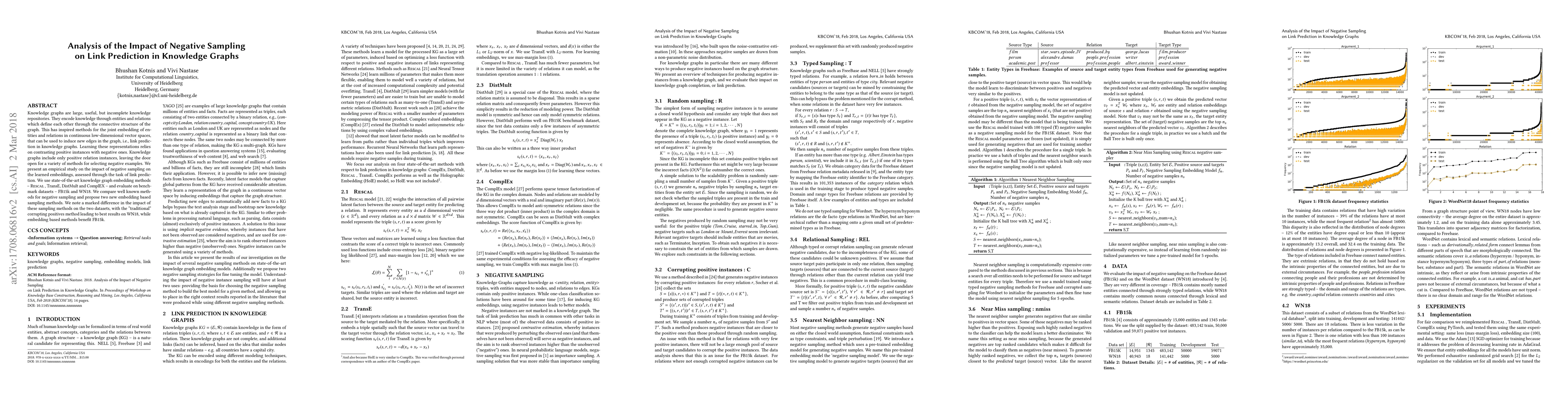 This paper investigates the effect of various negative sampling techniques on link prediction in knowledge graphs, using state-of-the-art embedding methods and benchmark datasets. The study finds that traditional sampling methods perform best on some datasets, while embedding-based methods yield better results on others.