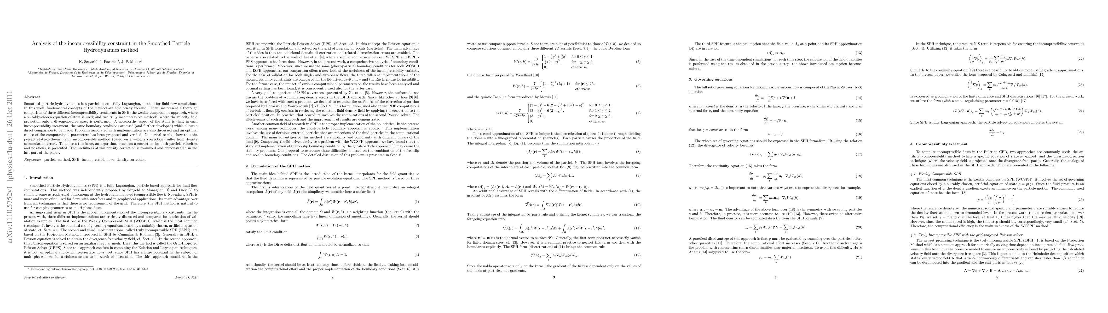 This paper compares three incompressibility treatments in Smoothed Particle Hydrodynamics (SPH) methods, analyzing the weakly compressible approach, and two truly incompressible methods. It proposes an optimal parameter choice and presents a new algorithm to correct density accumulation errors in the state-of-the-art truly incompressible method.