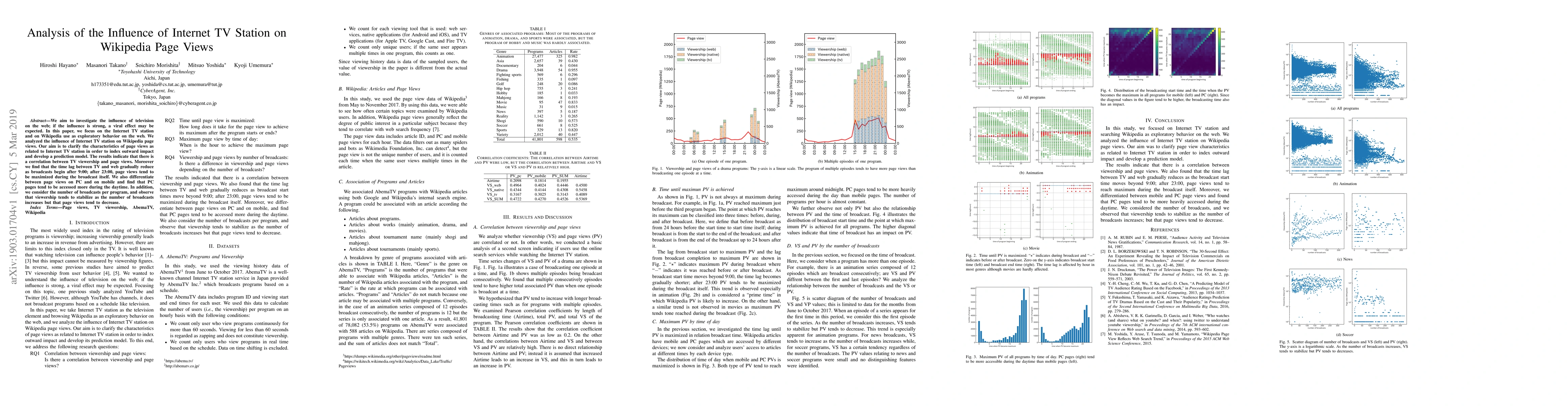 We aim to investigate the influence of television on the web; if the influence is strong, a viral effect may be expected. In this paper, we focus on the Internet TV station and on Wikipedia use as exploratory behavior on the web. We analyzed the influence of Internet TV station on Wikipedia page views. Our aim is to clarify the characteristics of page views as related to Internet TV station in order to index outward impact and develop a prediction model. The results indicate that there is a correlation between TV viewership and page views. Moreover we find that the time lag between TV and web gradually reduce as broadcasts begin after 9:00; after 23:00, page views tend to be maximized during the broadcast itself. We also differentiate between page views on PC and on mobile and find that PC pages tend to be accessed more during the daytime. In addition, we consider the number of broadcasts per program, and observe that viewership tends to stabilize as the number of broadcasts increases but that page views tend to decrease.
