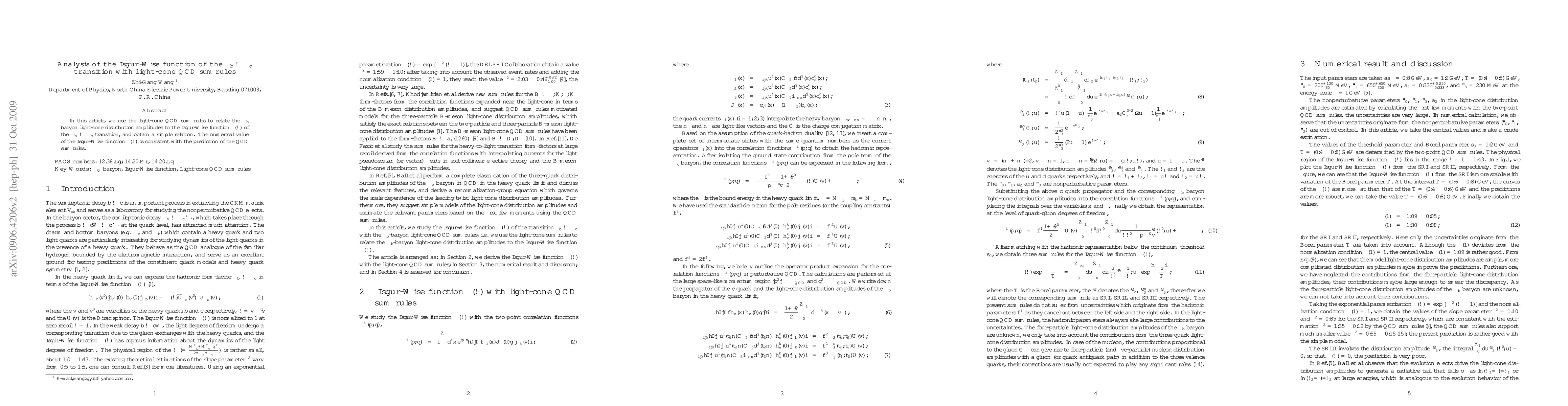 This paper employs light-cone QCD sum rules to connect the $\Lambda_b$ baryon light-cone distribution amplitudes to the Isgur-Wise function $\xi(\omega)$ for the $\Lambda_b \to \Lambda_c$ transition, yielding a consistent numerical value with QCD sum rule predictions.