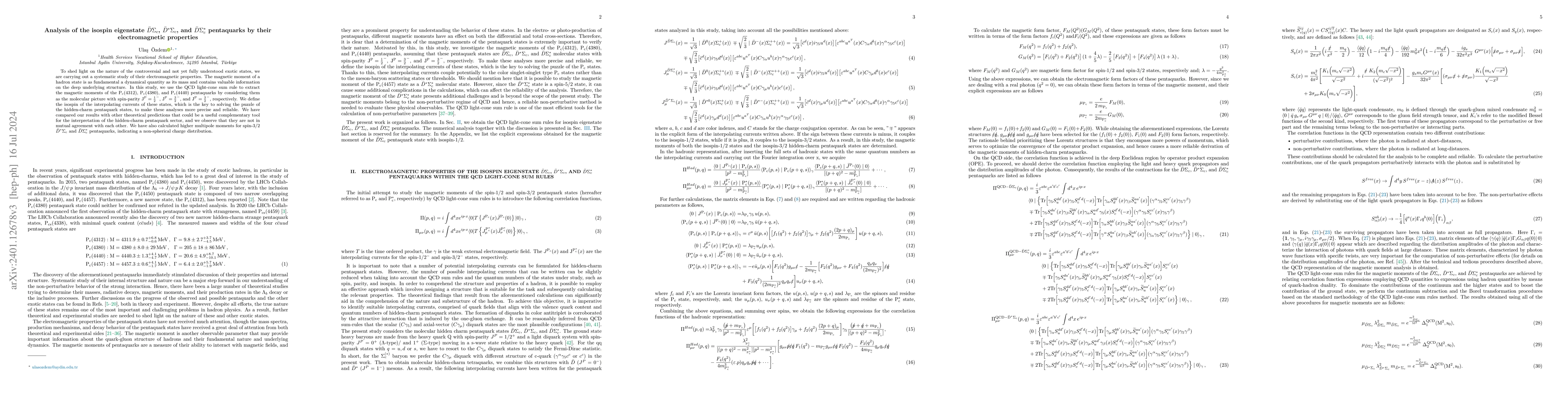 This study investigates the electromagnetic properties of $\bar D \Sigma_c$, $\bar D^{*} \Sigma_c$, and $\bar D \Sigma_c^{*}$ pentaquarks using QCD light-cone sum rules to determine their magnetic moments and higher multipole moments, revealing a non-spherical charge distribution. The results suggest discrepancies among theoretical predictions, highlighting the complexity of hidden-charm pentaquark states.