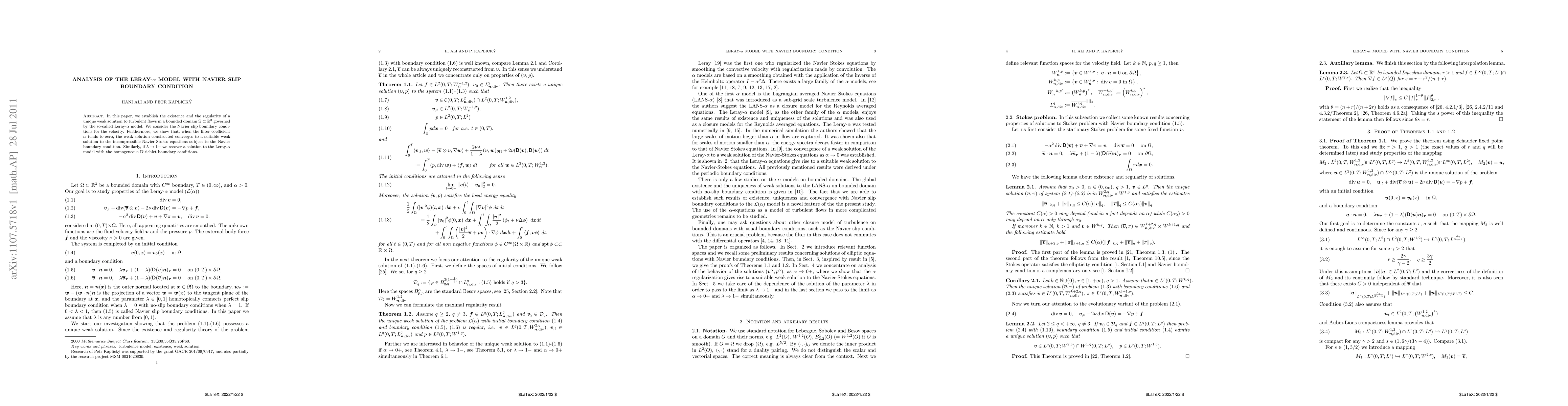 In this paper, we establish the existence and the regularity of a unique weak solution to turbulent flows in a bounded domain ${\Omega}\subset \mathbb R^3$ governed by the so-called Leray-{\alpha} model. We consider the Navier slip boundary conditions for the velocity. Furthermore, we show that, when the filter coefficient {\alpha} tends to zero, the weak solution constructed converges to a suitable weak solution to the incompressible Navier Stokes equations subject to the Navier boundary condition. Similarly, if {\lambda} tends to 1- we recover a solution to the Leray-{\alpha} model with the homogeneous Dirichlet boundary conditions.