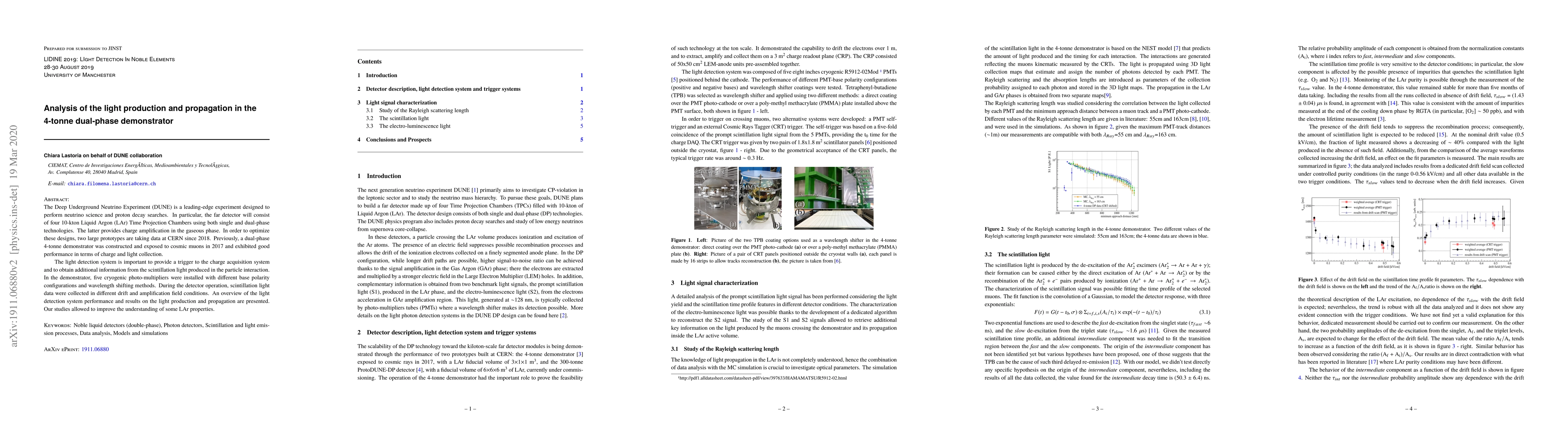 This paper analyzes the light production and propagation in a 4-tonne dual-phase demonstrator for the DUNE experiment, focusing on optimizing the Liquid Argon Time Projection Chambers. The study evaluates the performance of the cryogenic photo-multipliers under various conditions, contributing to a better understanding of the detector's scintillation light and its implications for charge collection and triggering.