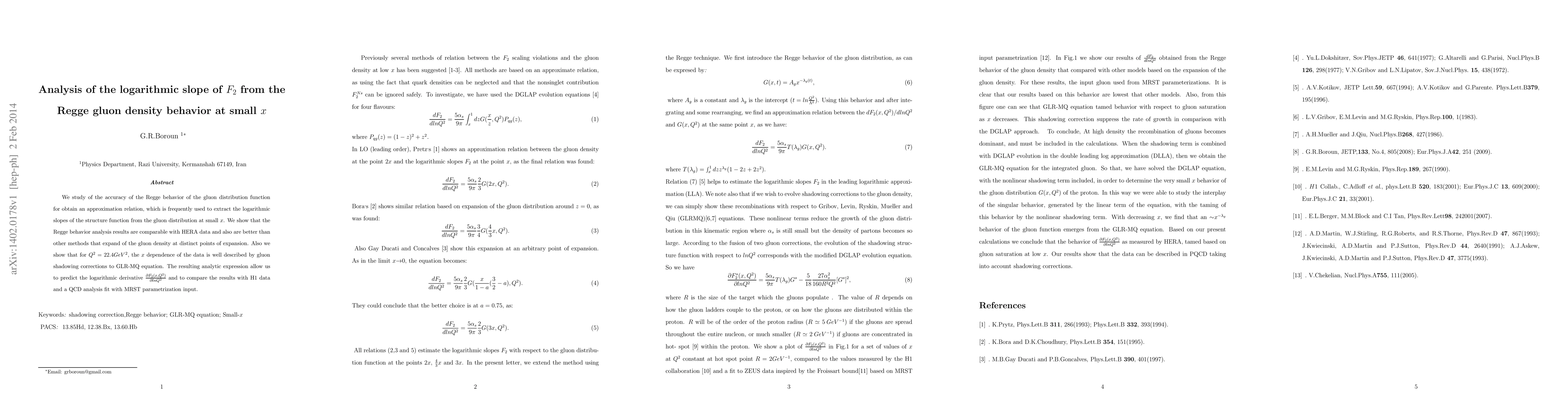 Researchers analyzed the Regge behavior of gluon distribution at small x and found it to be comparable with HERA data, providing an improved approximation relation for extracting logarithmic slopes.