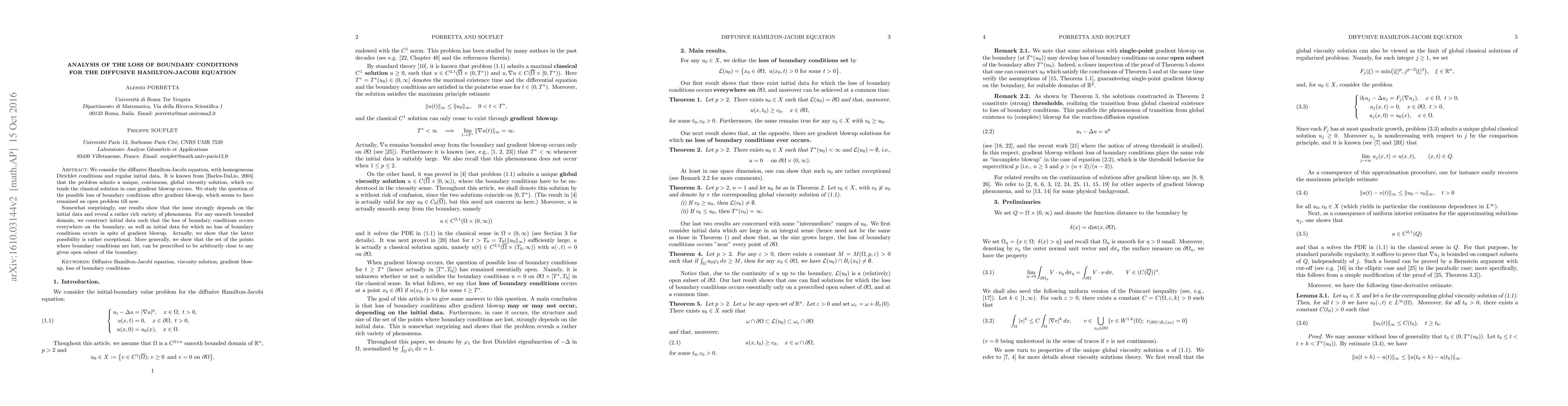 We consider the diffusive Hamilton-Jacobi equation, with homogeneous Dirichlet conditions and regular initial data. It is known from [Barles-DaLio, 2004] that the problem admits a unique, continuous, global viscosity solution, which extends the classical solution in case gradient blowup occurs. We study the question of the possible loss of boundary conditions after gradient blowup, which seems to have remained an open problem till now. Somewhat surprisingly, our results show that the issue strongly depends on the initial data and reveal a rather rich variety of phenomena. For any smooth bounded domain, we construct initial data such that the loss of boundary conditions occurs everywhere on the boundary, as well as initial data for which no loss of boundary conditions occurs in spite of gradient blowup. Actually, we show that the latter possibility is rather exceptional. More generally, we show that the set of the points where boundary conditions are lost, can be prescribed to be arbitrarily close to any given open subset of the boundary.