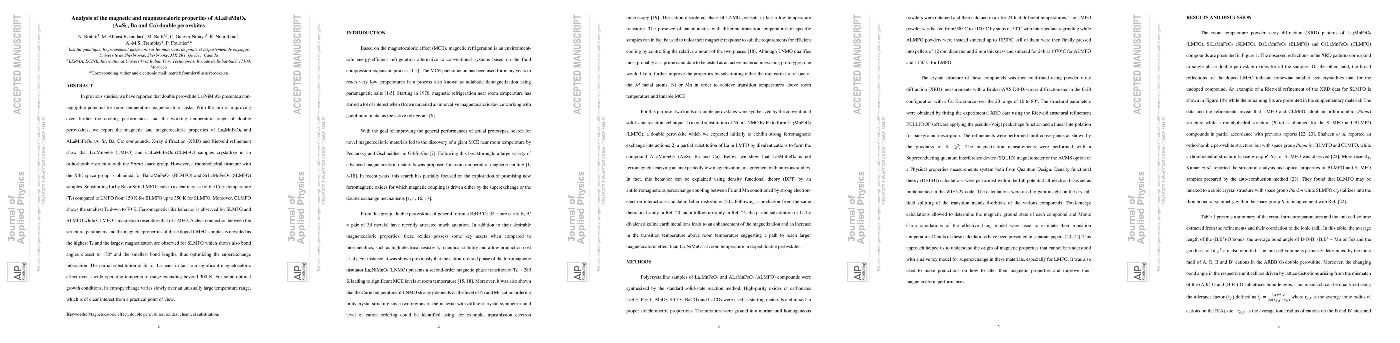 This study investigates the magnetic and magnetocaloric properties of ALaMnFeO6 (A = Sr, Ba, Ca) double perovskites, revealing that Sr doping significantly enhances Curie temperature and optimizes the superexchange interaction, resulting in a substantial magnetocaloric effect over a broad temperature range up to 300 K.