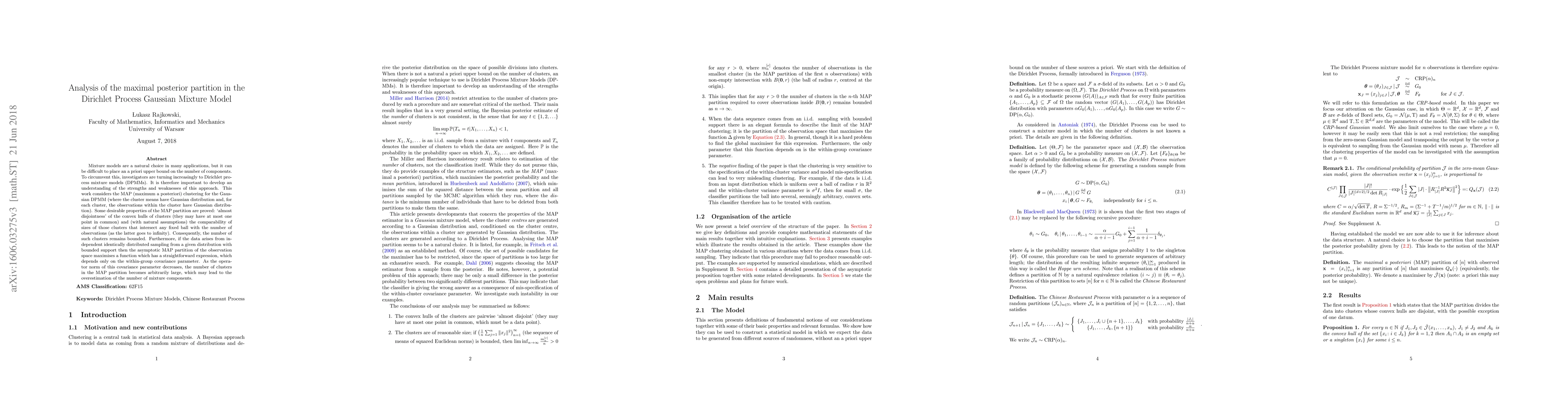 This paper analyzes the maximal posterior partition in Gaussian Dirichlet Process Mixture Models, proving properties like the "almost disjointness" of cluster convex hulls and the comparability of cluster sizes with the number of observations. It highlights the potential for overestimation of mixture components as the within-group covariance decreases.