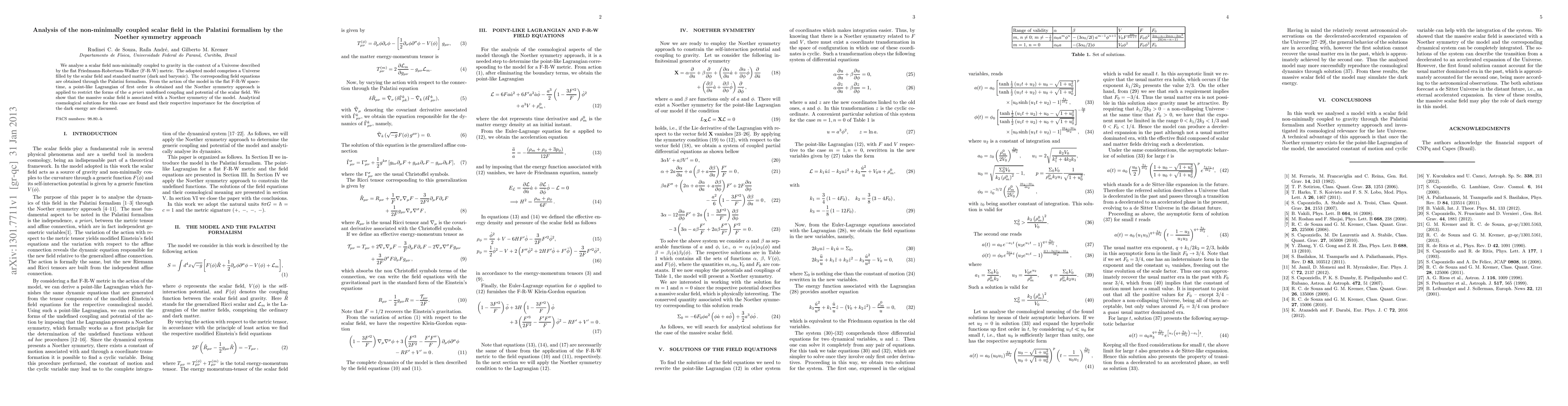 This paper analyzes a non-minimally coupled scalar field in the Palatini formalism using the Noether symmetry approach within a flat F-R-W metric. Analytical solutions for the cosmological model are derived, highlighting the role of the massive scalar field in describing dark energy.