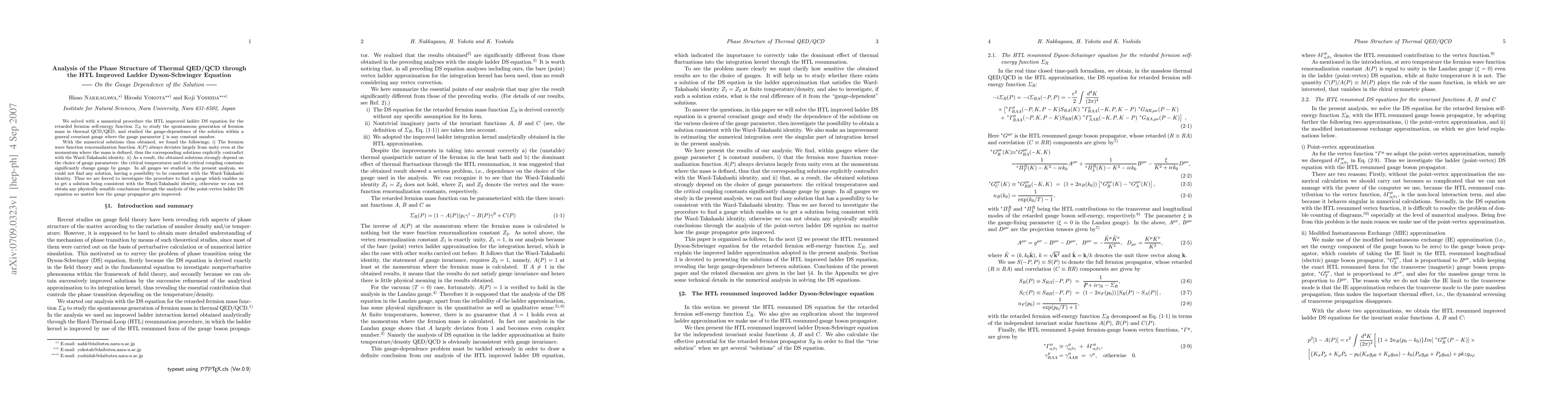 We solved with a numerical procedure the HTL improved ladder DS equation for the retarded fermion self-energy function $\Sigma_R$ to study the spontaneous generation of fermion mass in thermal QCD/QED, and studied the gauge-dependence of the solution within a general covariant gauge where the gauge parameter $\xi$ is any constant number. With the numerical solutions thus obtained, we found the followings; i) The fermion wave function renormalization function $A(P)$ always deviates largely from unity even at the momentum where the mass is defined, thus the corresponding solutions explicitly contradict with the Ward-Takahashi identity. ii) As a result, the obtained solutions strongly depend on the choice of gauge parameters: the critical temperatures and the critical coupling constants significantly change gauge by gauge. In all gauges we studied in the present analysis, we could not find any solution, having a possibility to be consistent with the Ward-Takahashi identity. Thus we are forced to investigate the procedure to find a gauge which enables us to get a solution being consistent with the Ward-Takahashi identity, otherwise we can not obtain any physically sensible conclusions through the analysis of the point-vertex ladder DS equation no matter how the gauge propagator gets improved.