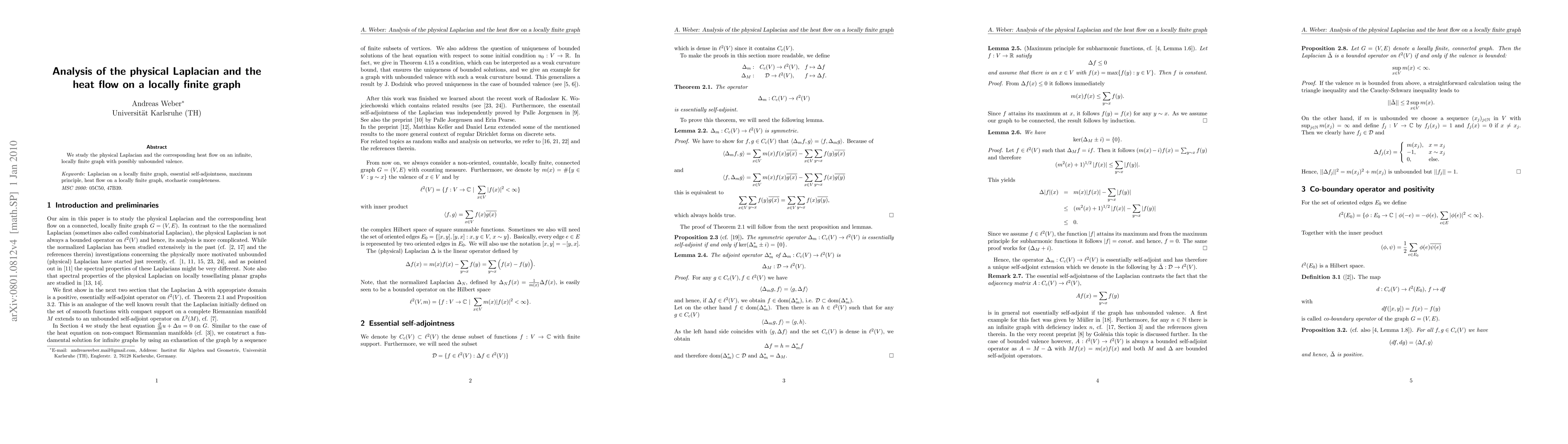 We study the physical Laplacian and the corresponding heat flow on an infinite, locally finite graph with possibly unbounded valence.