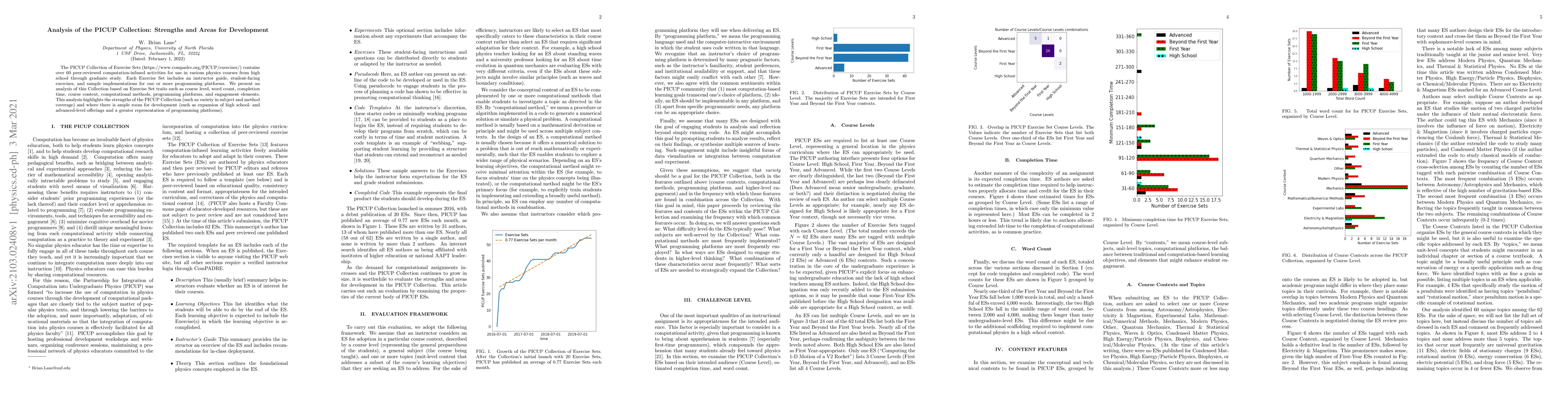 The PICUP Collection of Exercise Sets (https://www.compadre.org/PICUP/exercises/) contains over 60 peer-reviewed computation-infused activities for use in various physics courses from high school through graduate study. Each Exercise Set includes an instructor guide, student-facing exercises, and sample implementations for one or more programming platforms. We present an analysis of this Collection based on Exercise Set traits such as course level, word count, completion time, course context, computational methods, programming platforms, and engagement elements. This analysis highlights the strengths of the PICUP Collection (such as variety in subject and method coverage) and where there is ample room for development (such as expansion of high school- and advanced-level offerings and a greater representation of programming platforms).