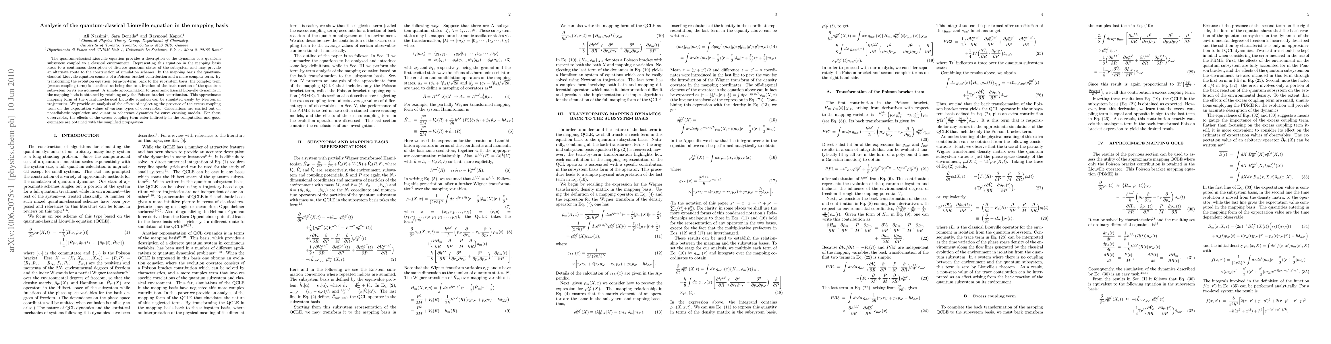 This paper analyzes the quantum-classical Liouville equation in the mapping basis, showing that it simplifies to a Poisson bracket contribution with an excess coupling term. The study finds that neglecting the excess coupling term provides good estimates for nonadiabatic dynamics simulations, facilitating easier Newtonian trajectory simulations.