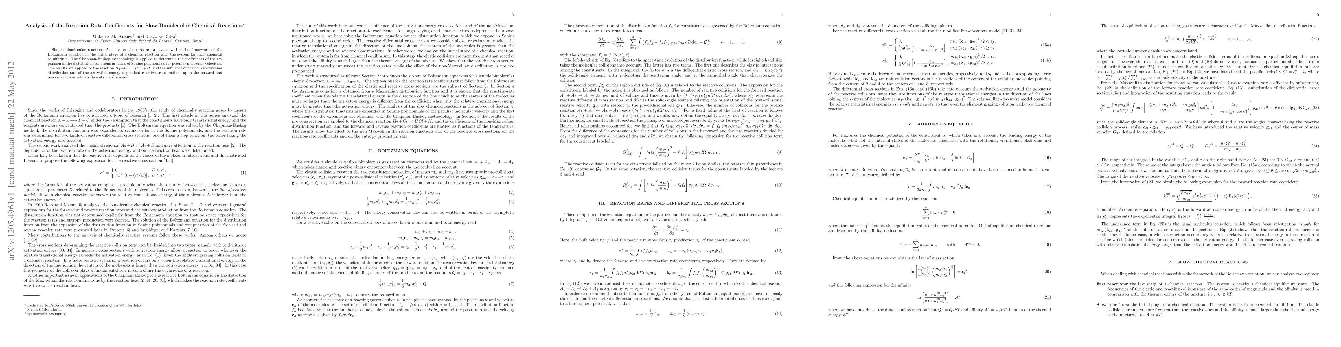 This paper analyzes the reaction rate coefficients for simple bimolecular reactions using the Boltzmann equation and Chapman-Enskog methodology, focusing on the non-Maxwellian distribution and activation-energy dependent cross sections. The findings are applied to the reaction $H_2+Cl\rightleftharpoons HCl+H$, highlighting their impact on forward and reverse reaction rate coefficients.