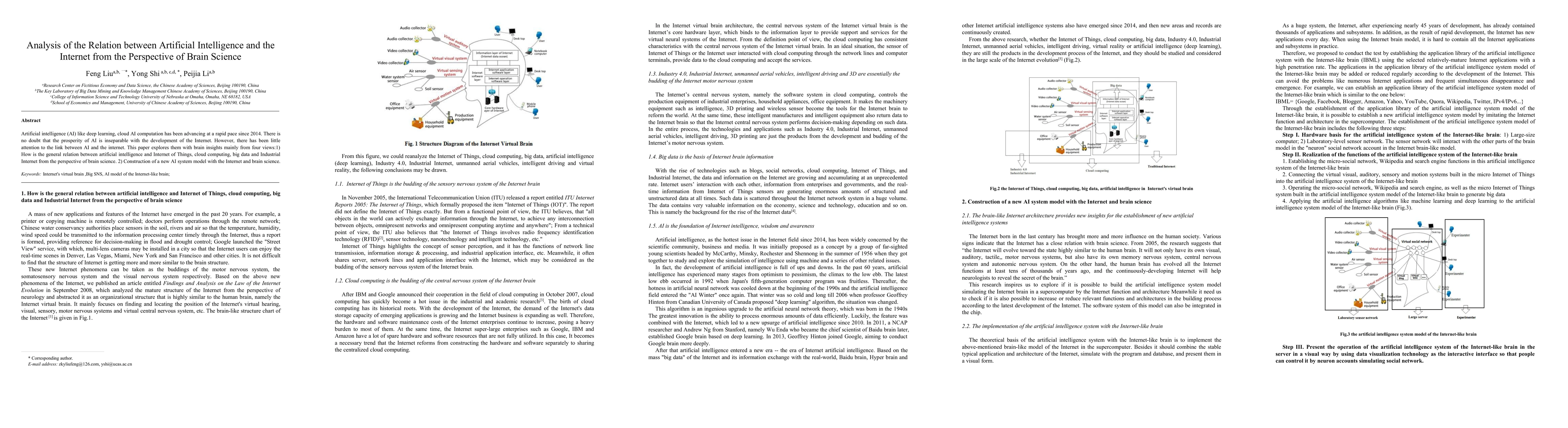 This paper investigates the relationship between artificial intelligence and the Internet through brain science perspectives, focusing on the connections between AI and Internet of Things, cloud computing, big data, and Industrial Internet. It proposes a new AI system model integrating the Internet and brain science insights.
