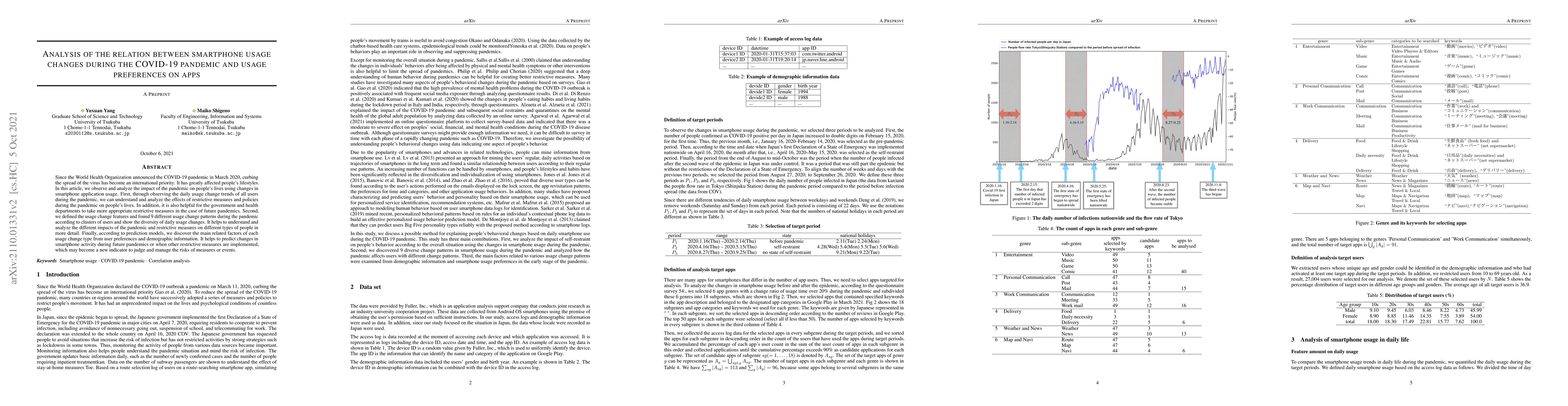 Since the World Health Organization announced the COVID-19 pandemic in March 2020, curbing the spread of the virus has become an international priority. It has greatly affected people's lifestyles. In this article, we observe and analyze the impact of the pandemic on people's lives using changes in smartphone application usage. First, through observing the daily usage change trends of all users during the pandemic, we can understand and analyze the effects of restrictive measures and policies during the pandemic on people's lives. In addition, it is also helpful for the government and health departments to take more appropriate restrictive measures in the case of future pandemics. Second, we defined the usage change features and found 9 different usage change patterns during the pandemic according to clusters of users and show the diversity of daily usage changes. It helps to understand and analyze the different impacts of the pandemic and restrictive measures on different types of people in more detail. Finally, according to prediction models, we discover the main related factors of each usage change type from user preferences and demographic information. It helps to predict changes in smartphone activity during future pandemics or when other restrictive measures are implemented, which may become a new indicator to judge and manage the risks of measures or events.