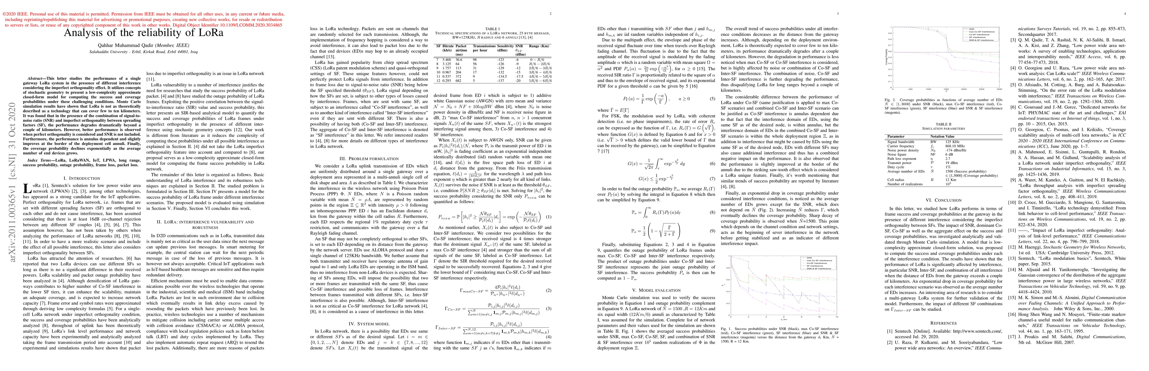 This study evaluates the reliability of a single gateway LoRa system under interference, revealing significant performance degradation beyond a couple of kilometers due to SNR and imperfect orthogonality. The research concludes that LoRa's actual coverage is limited and declines exponentially with more end devices.