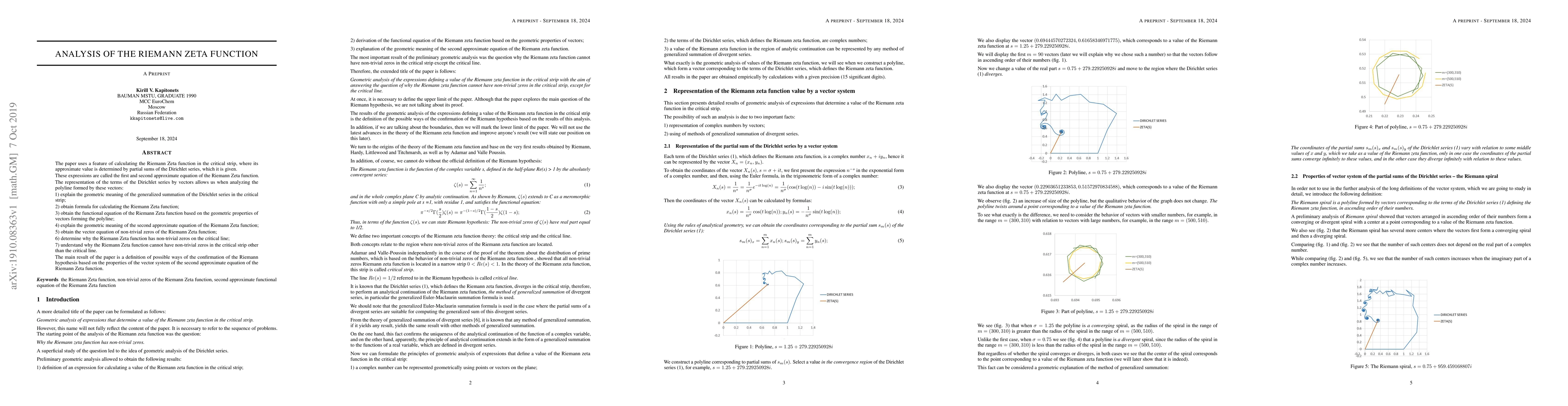 The main result of the paper is a definition of possible ways of the confirmation of the Riemann hypothesis based on the properties of the vector system of the second approximate equation of the Riemann Zeta function. The paper uses a feature of calculating the Riemann Zeta function in the critical strip, where its approximate value is determined by partial sums of the Dirichlet series, which it is given. These expressions are called the first and second approximate equation of the Riemann Zeta function. The representation of the terms of the Dirichlet series by vectors allows us when analyzing the polyline formed by these vectors: 1) explain the geometric meaning of the generalized summation of the Dirichlet series in the critical strip; 2) obtain formula for calculating the Riemann Zeta function; 3) obtain the functional equation of the Riemann Zeta function based on the geometric properties of vectors forming the polyline; 4) explain the geometric meaning of the second approximate equation of the Riemann Zeta function; 5) obtain the vector equation of non-trivial zeros of the Riemann Zeta function; 6) determine why the Riemann Zeta function has non-trivial zeros on the critical line; 7) understand why the Riemann Zeta function cannot have non-trivial zeros in the critical strip other than the critical line.