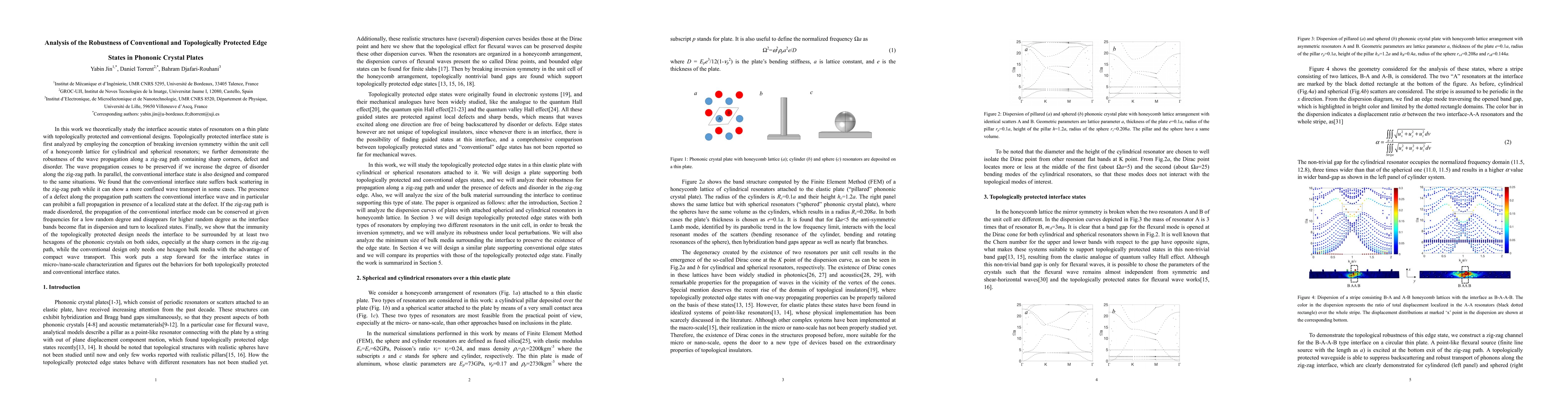 This research compares the robustness of acoustic interface states in phononic crystal plates with topologically protected designs versus conventional designs, showing that topologically protected states maintain wave propagation even along disordered paths with sharp corners, while conventional states suffer from backscattering and localized scattering effects, especially with defects and higher degrees of disorder.
