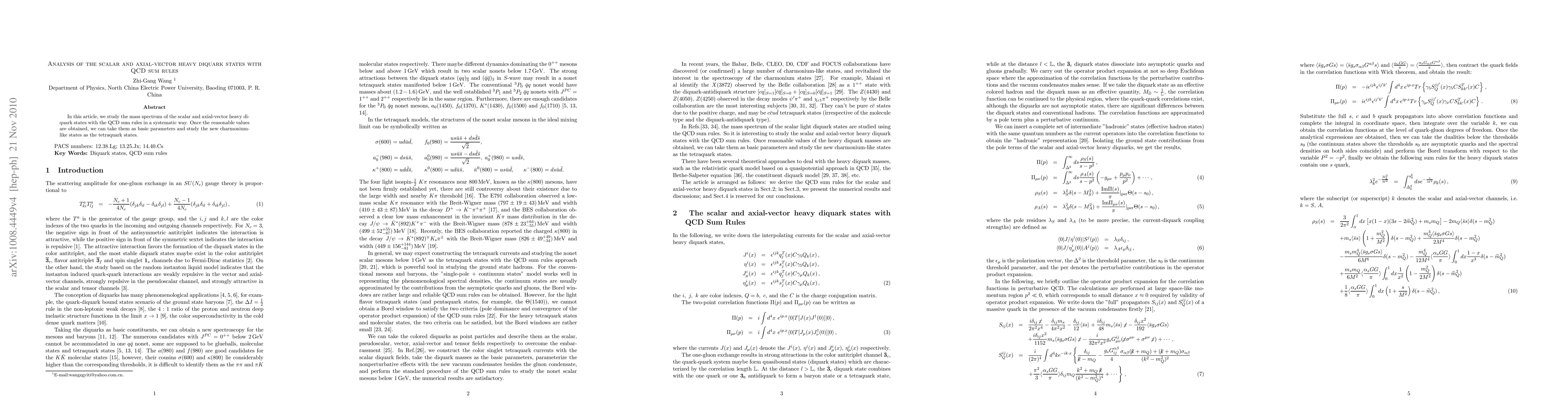 This paper systematically analyzes the mass spectrum of scalar and axial-vector heavy diquark states using QCD sum rules, aiming to obtain reliable values that can serve as foundational parameters for studying new charmonium-like tetraquark states.