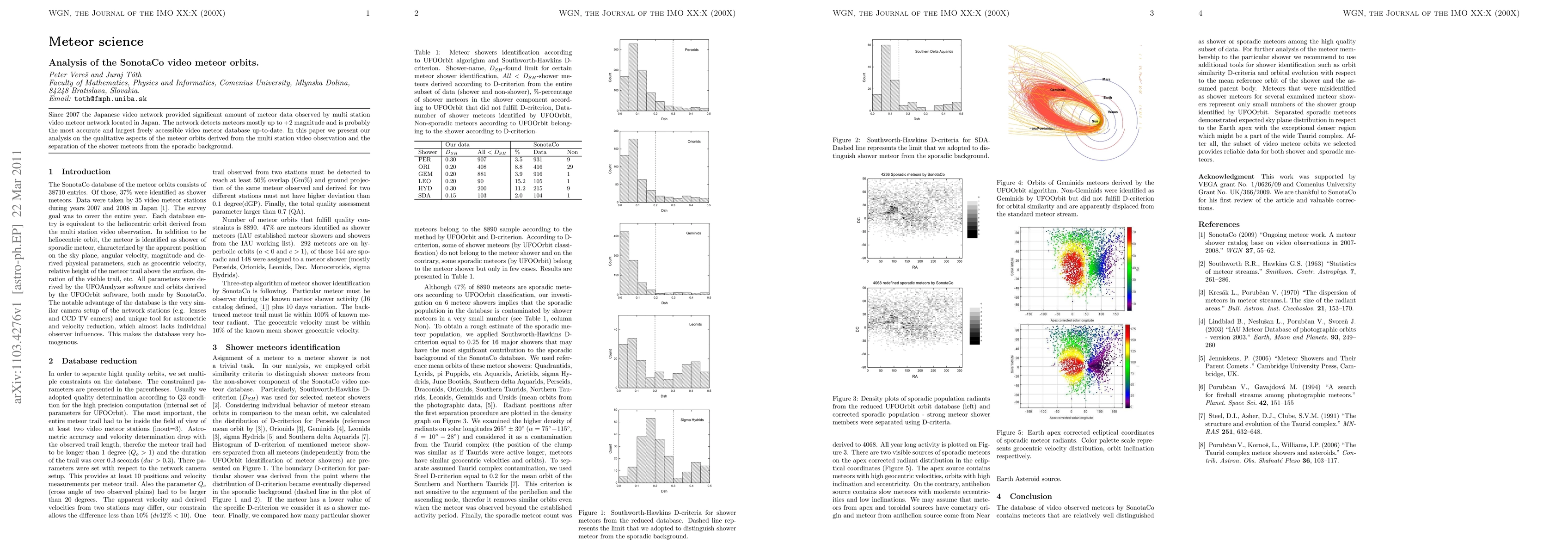 This paper analyzes the orbits of meteors observed by the Japanese SonotaCo multi-station video network since 2007, focusing on distinguishing shower meteors from sporadic background. The study highlights the network's accuracy and the largest freely accessible video meteor database.
